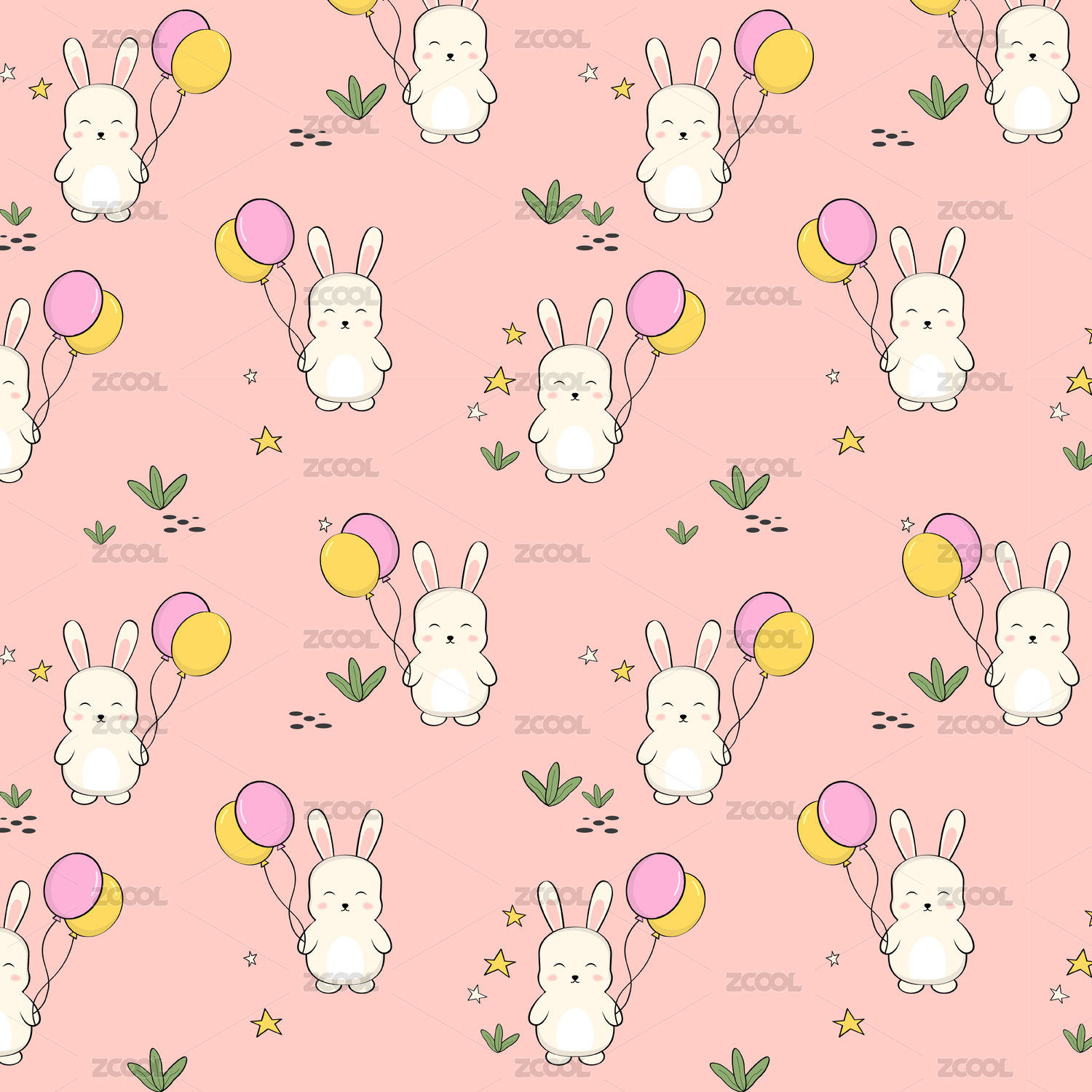 儿童可爱兔子卡通动物花朵无缝背景印花