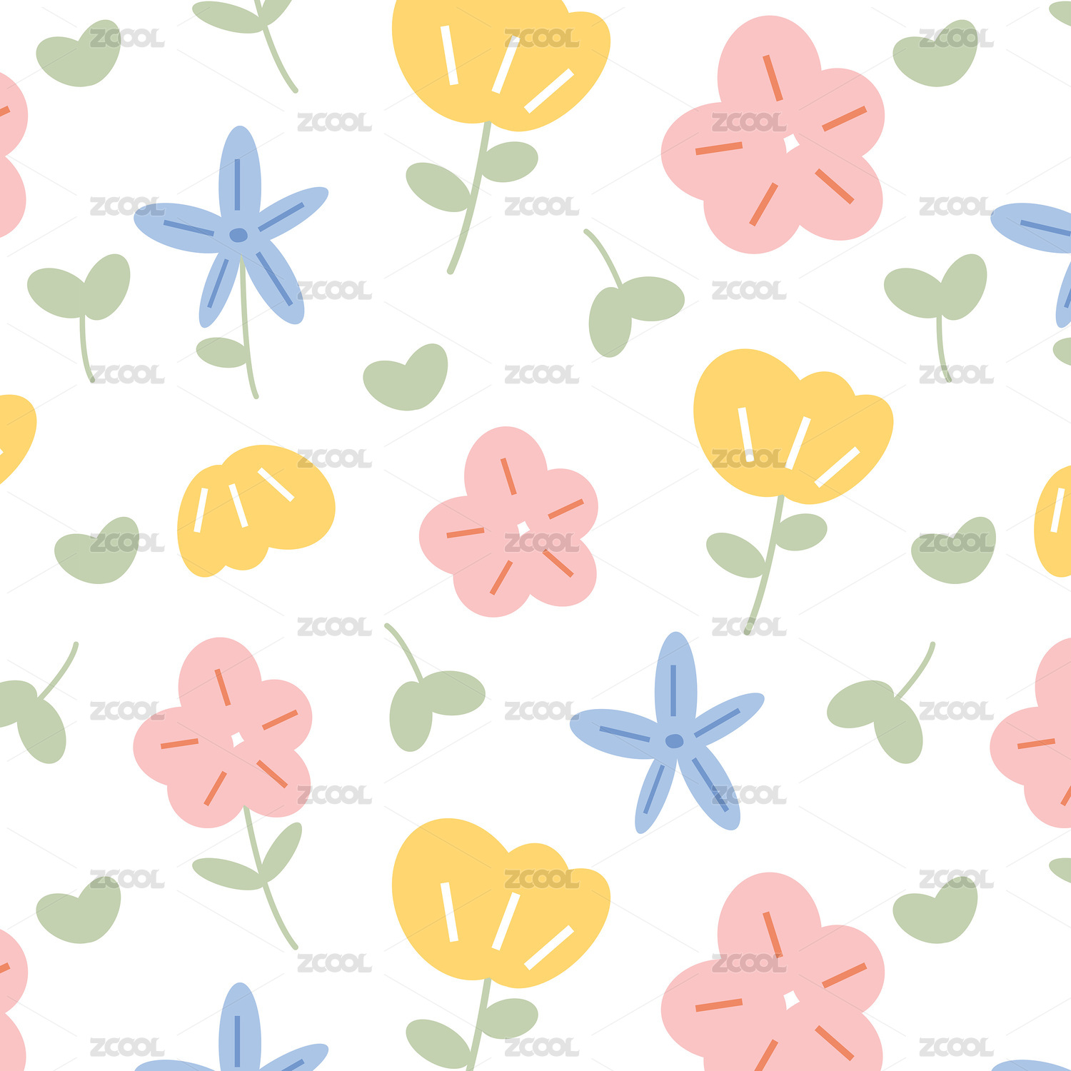 清新可爱风卡通手绘花朵矢量四方连续背景