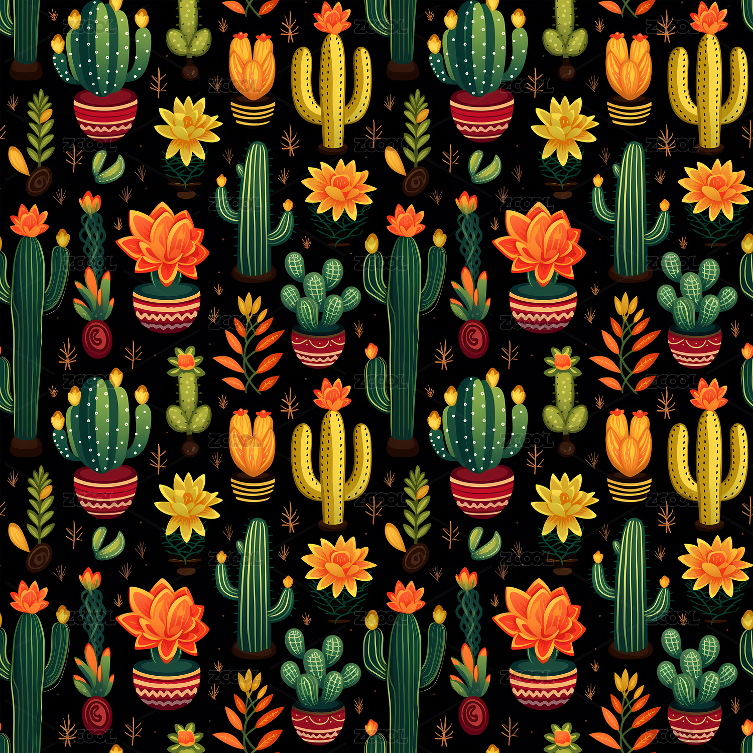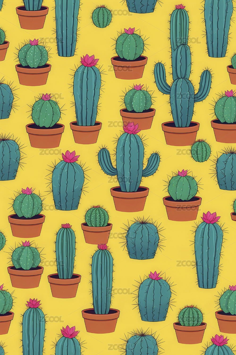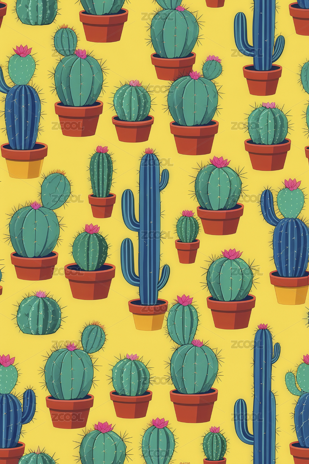 仙人掌盆栽无缝平铺四方连续纹样图案背景