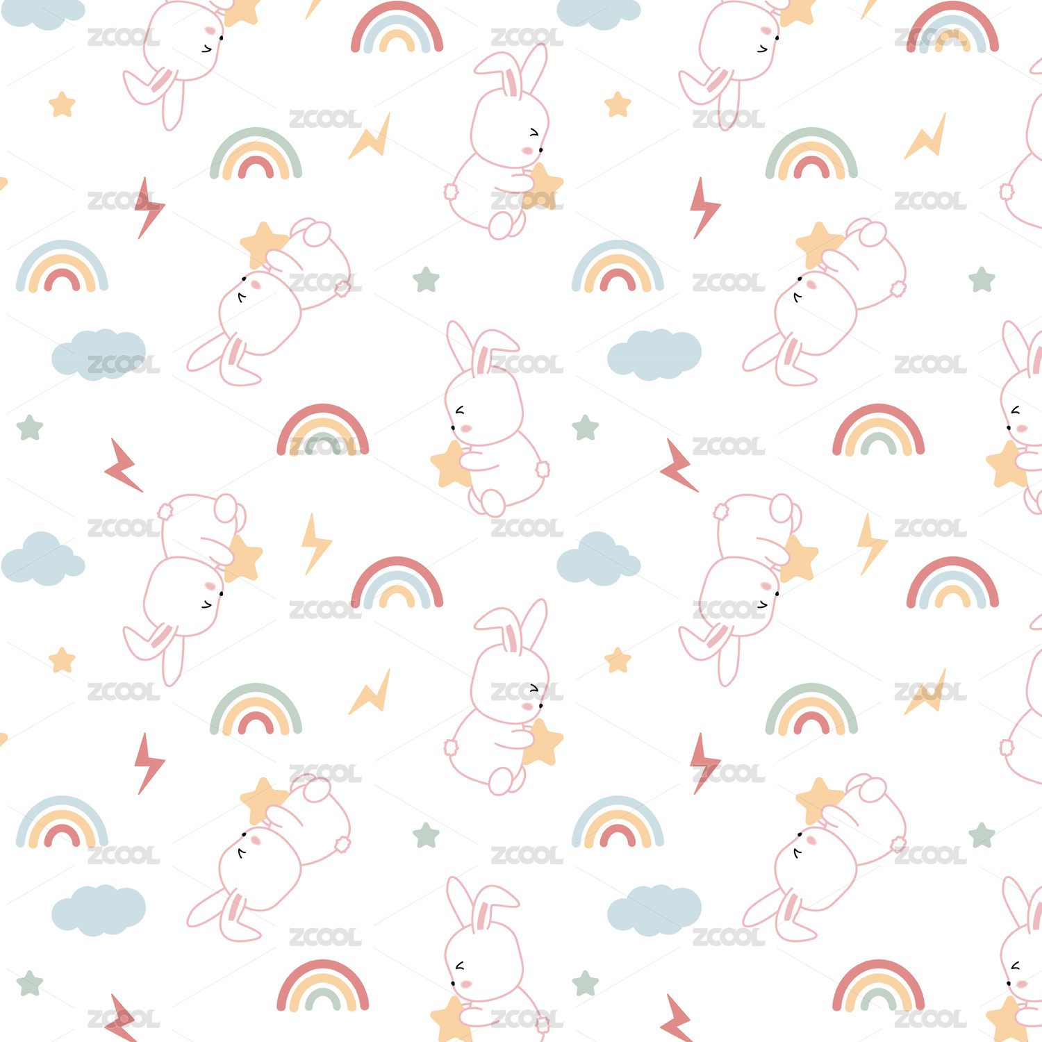 可爱清新手绘卡通小白兔儿童风格无缝背景