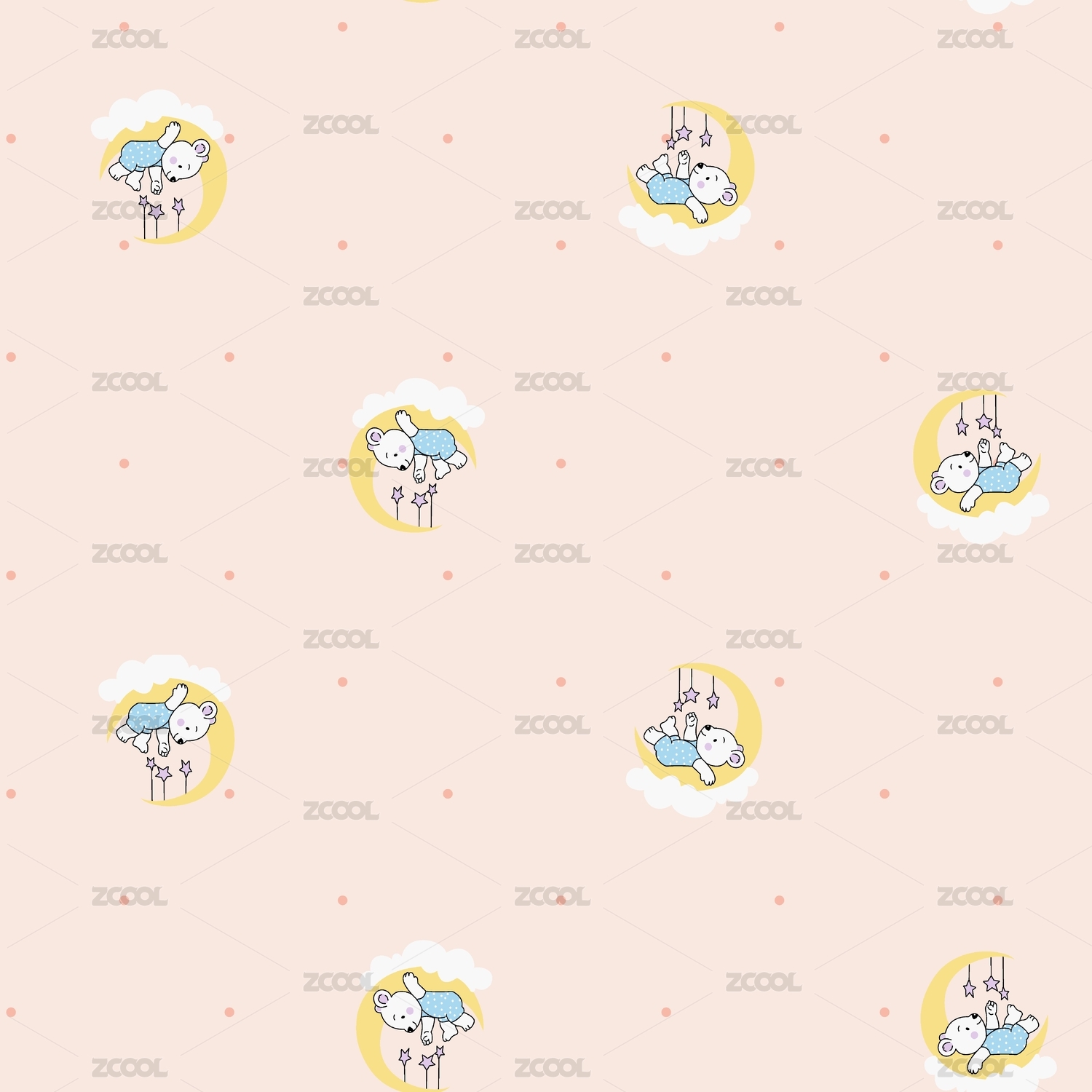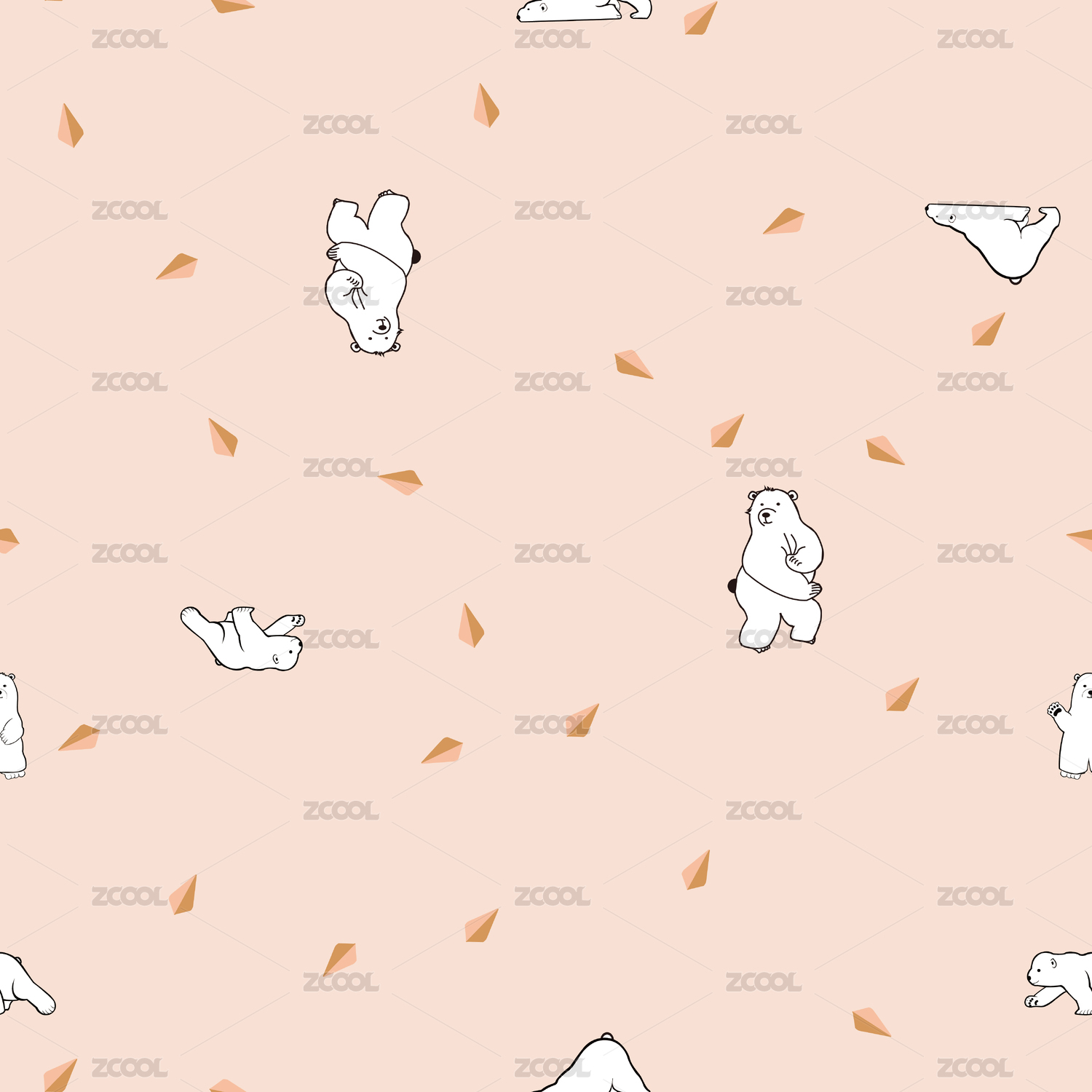 北欧风清新ins可爱卡通白熊无缝印花背景