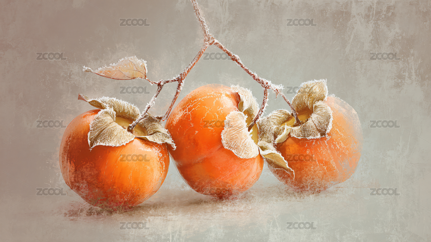 霜柿艺术插画美食静物图