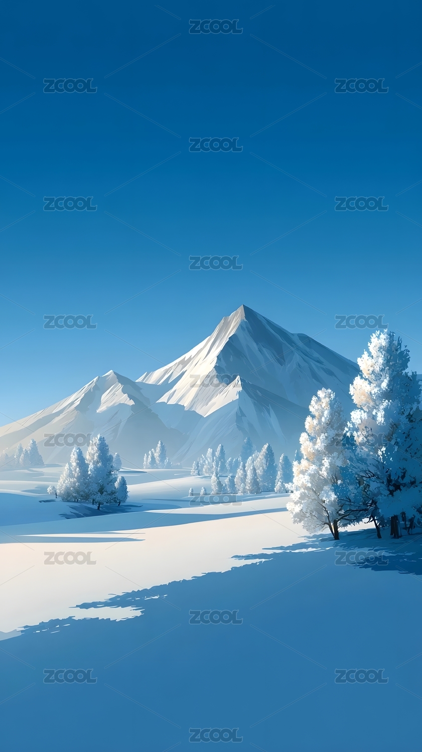 雪域静谧的冬日晨曦 纯净雪山下的童话世界