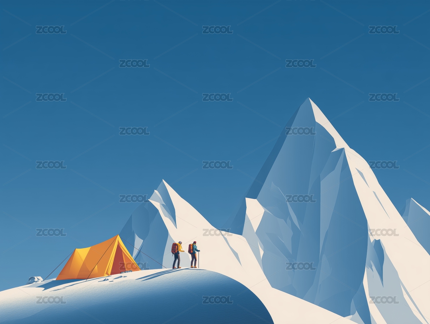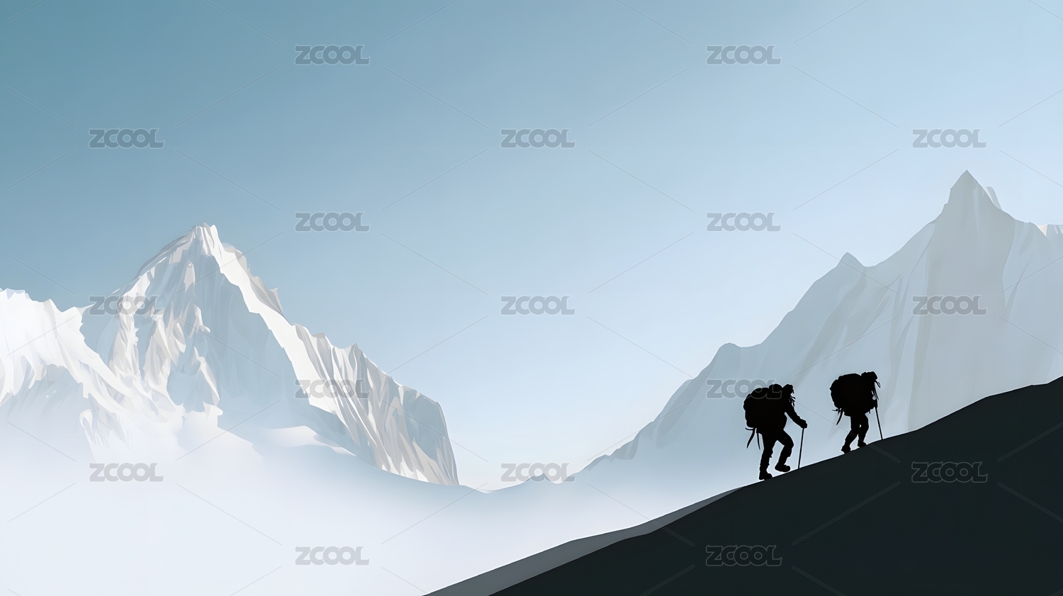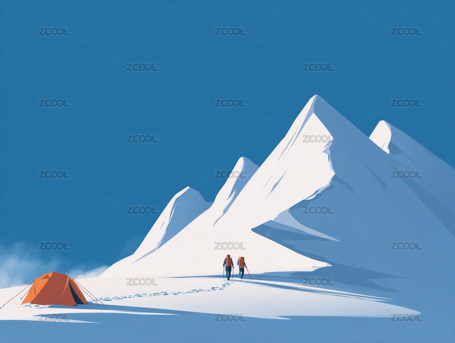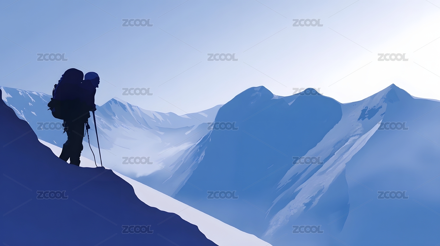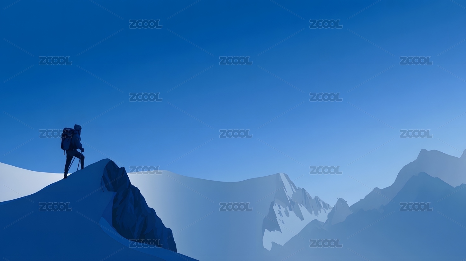 雪山,蓝天,风景,雪地,登山,户外,背包,远眺,挑战,攀登