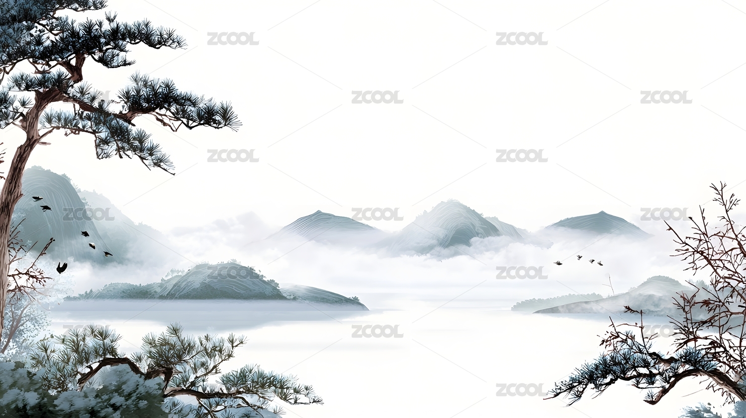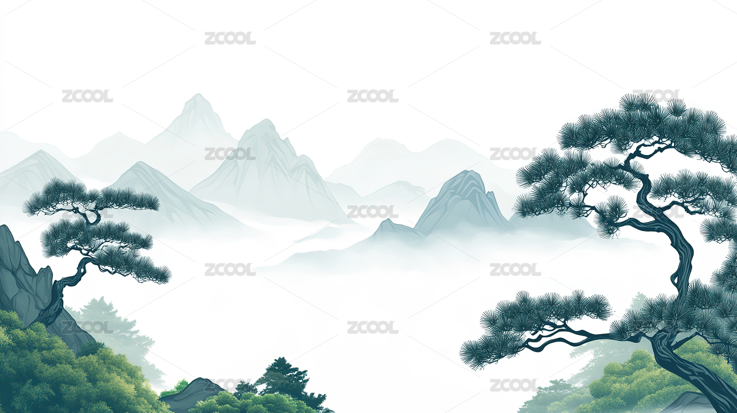 清新,淡雅,自然,风景,意境,云雾,山峰,远山,朦胧,水墨