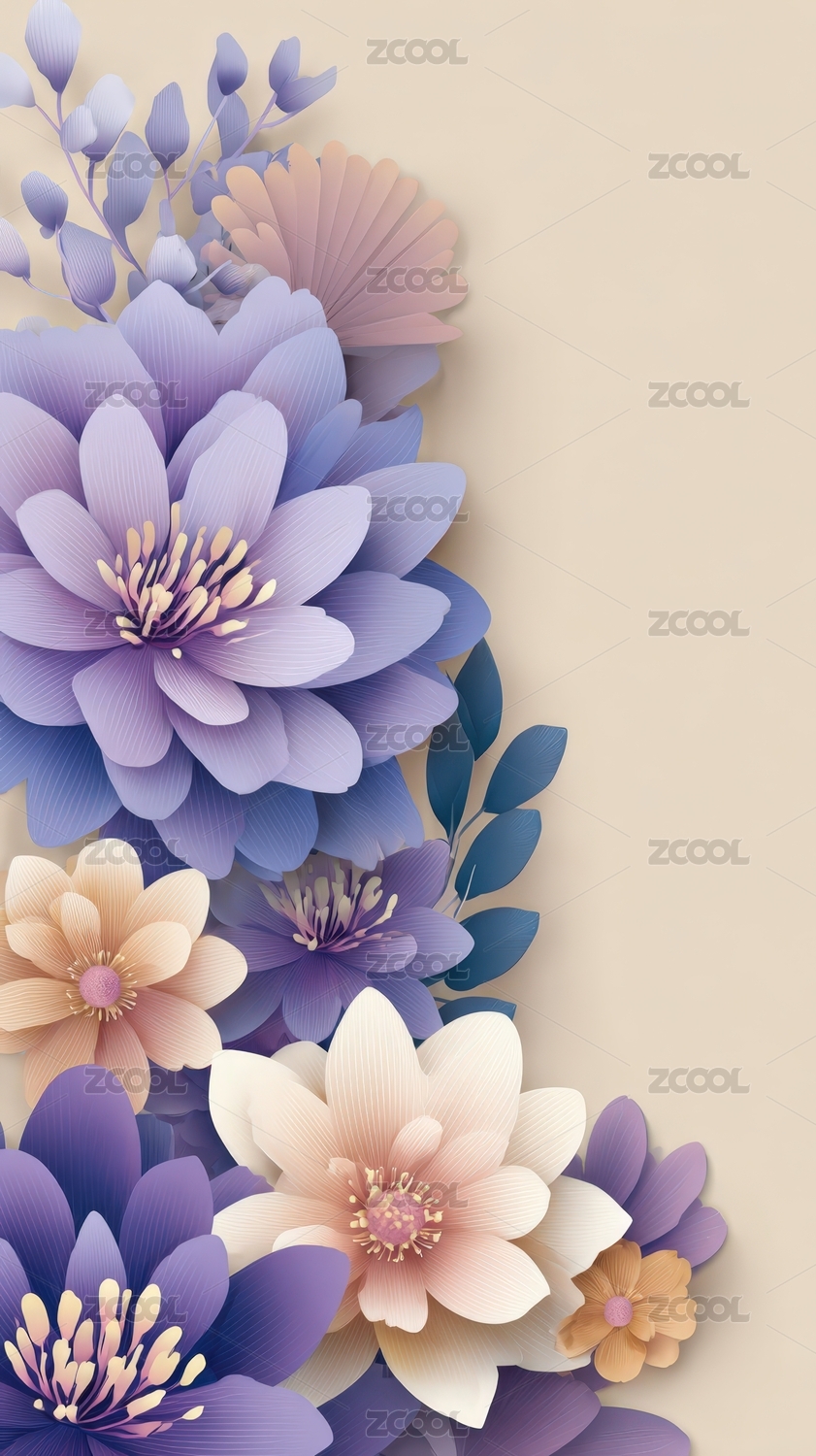 空白标签鲜花背景墙易拉宝海报的插画艺术