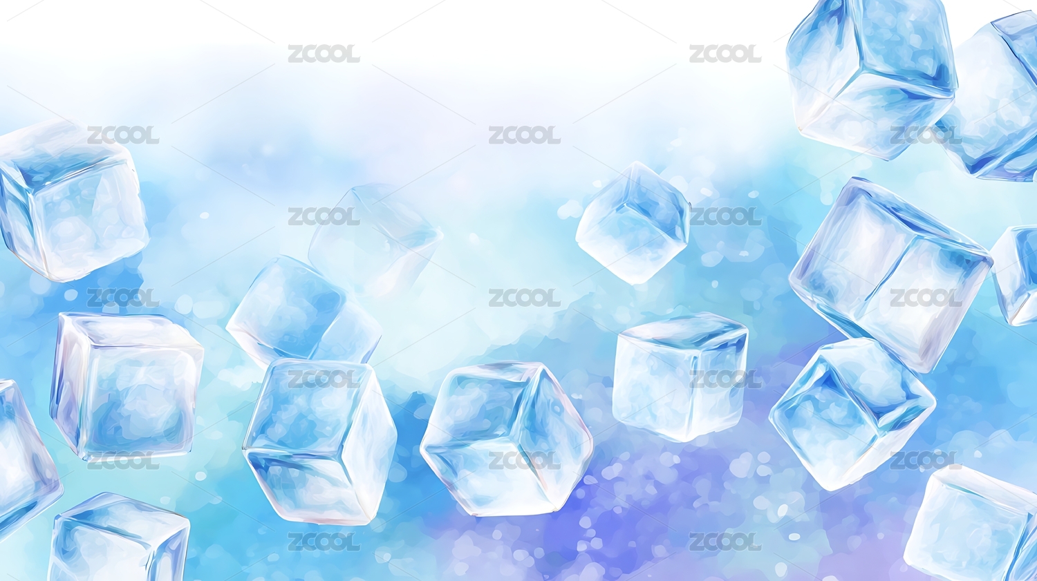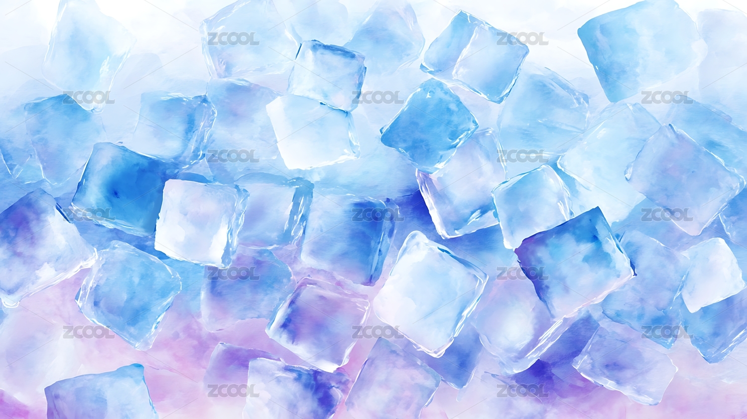 清凉冰块水彩背景