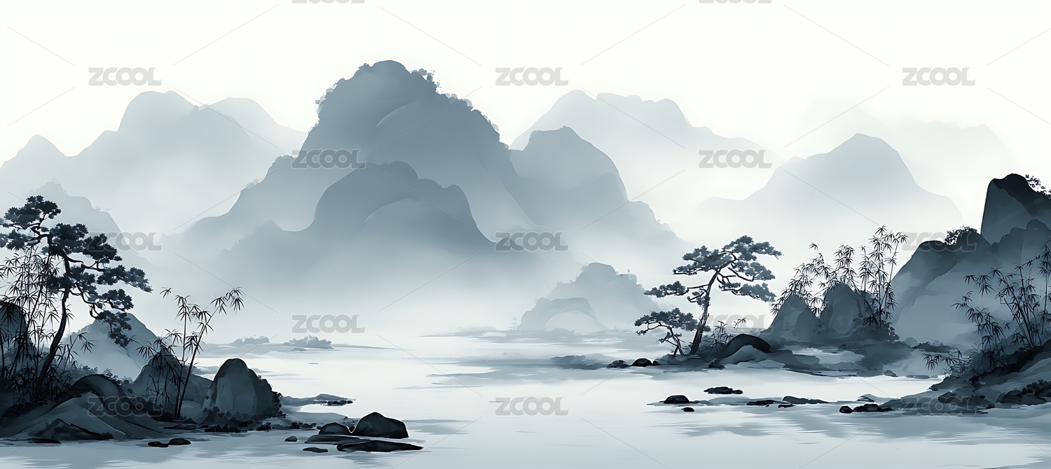 高山,风景,天空,水墨画,国潮,壁纸,节日,插画,写意,宁静