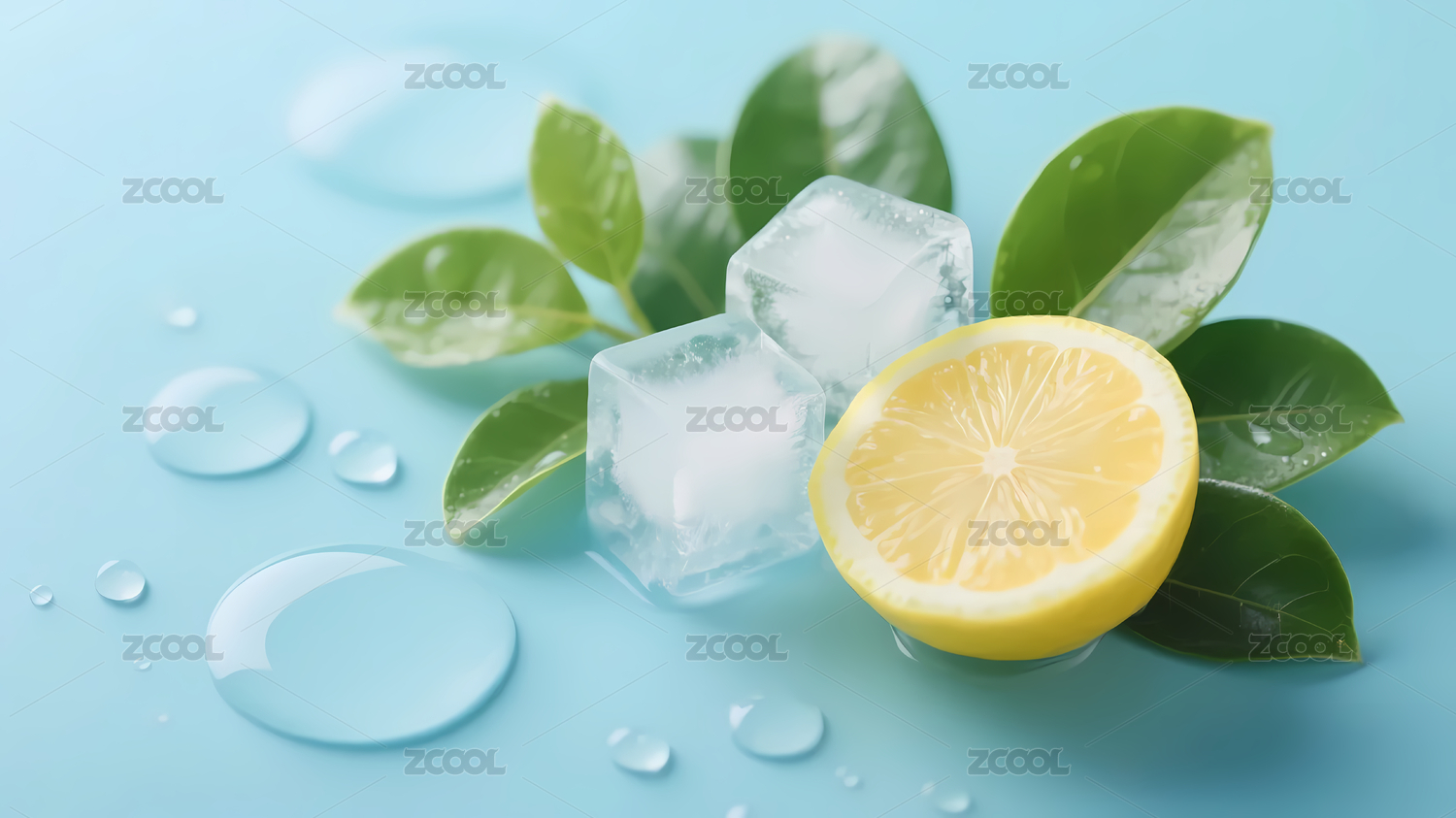 柠檬绿叶冰块清新