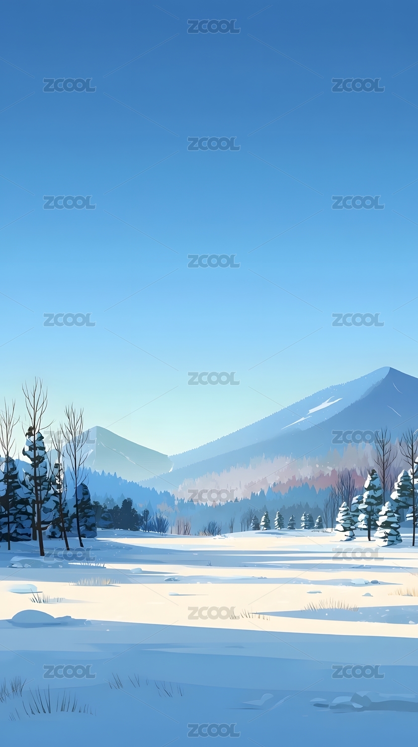 树木,清冷,远山,风景,自然,山峰,静谧,雪山,寒冷,冬季