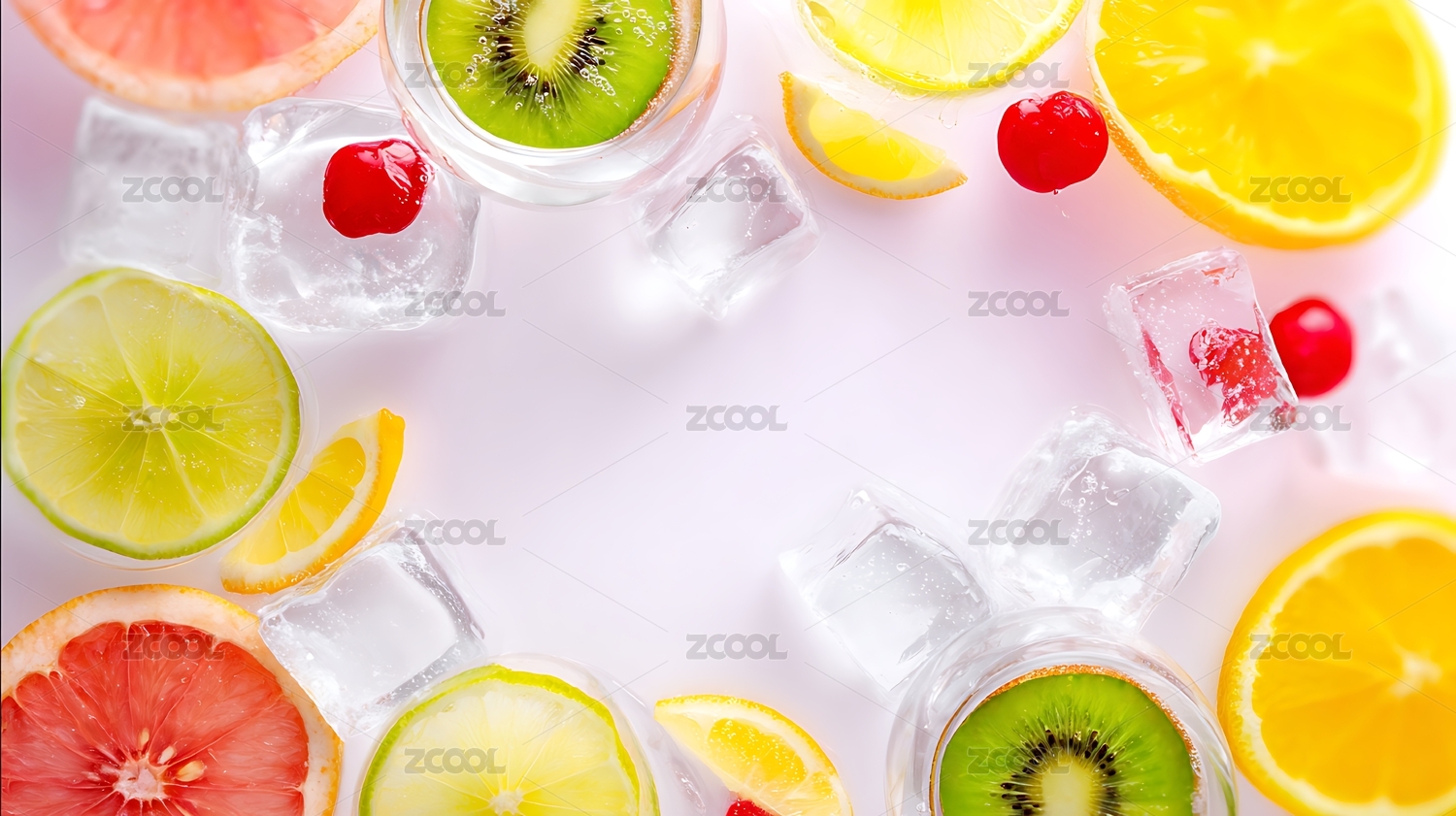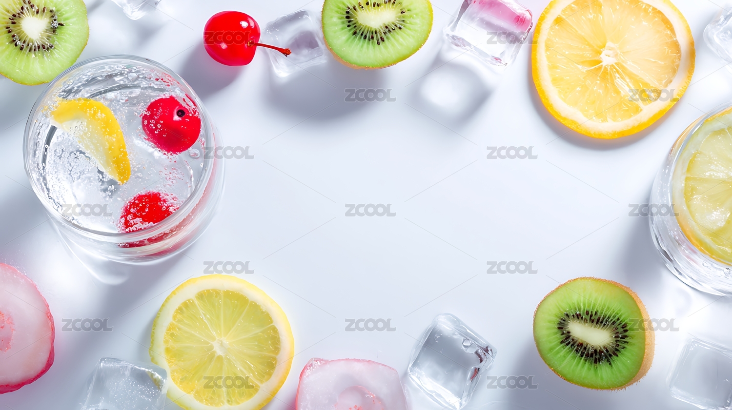 冰块,新鲜,健康,美味,夏日,清爽,水果,柠檬,猕猴桃,橙子