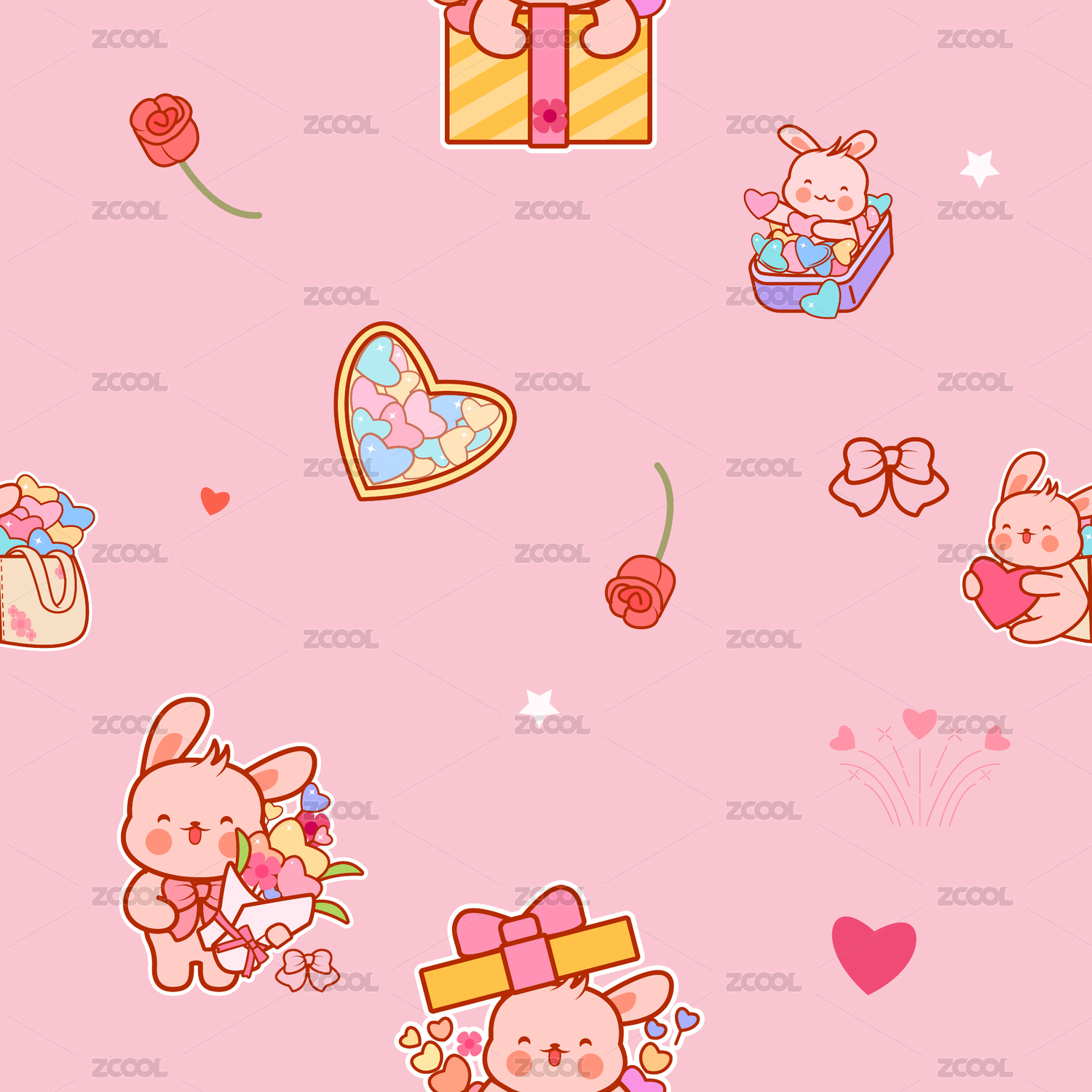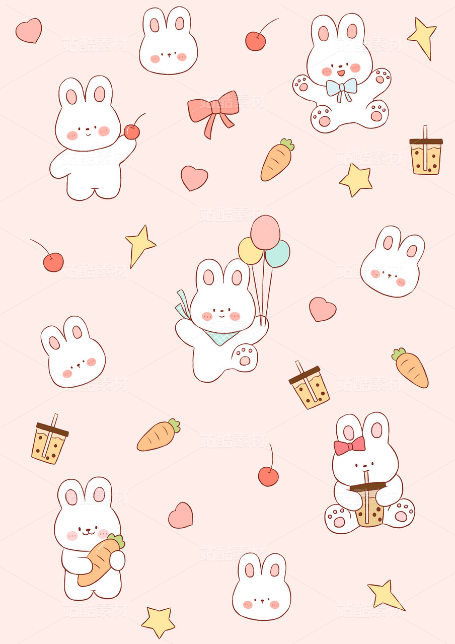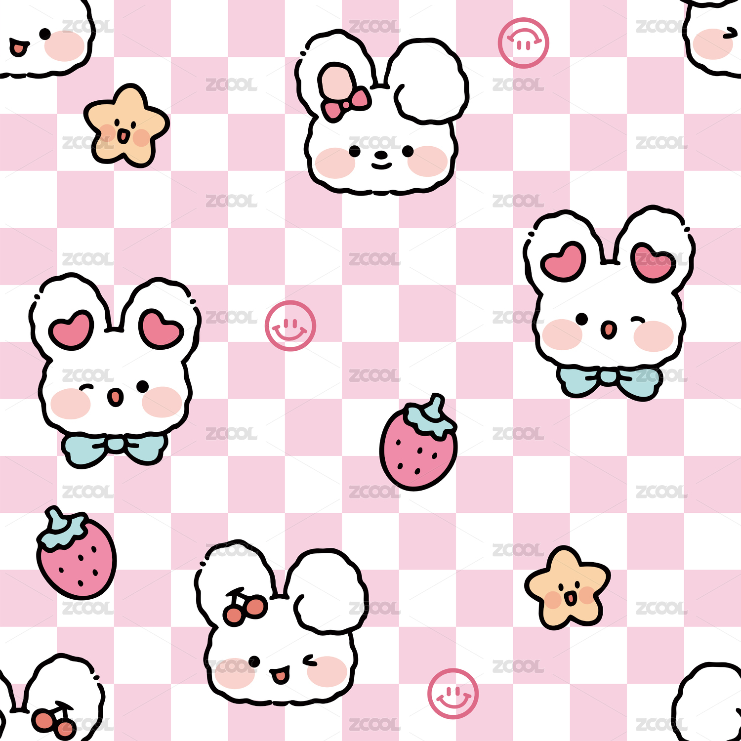 儿童卡通可爱草莓小兔子无缝四方连续背景