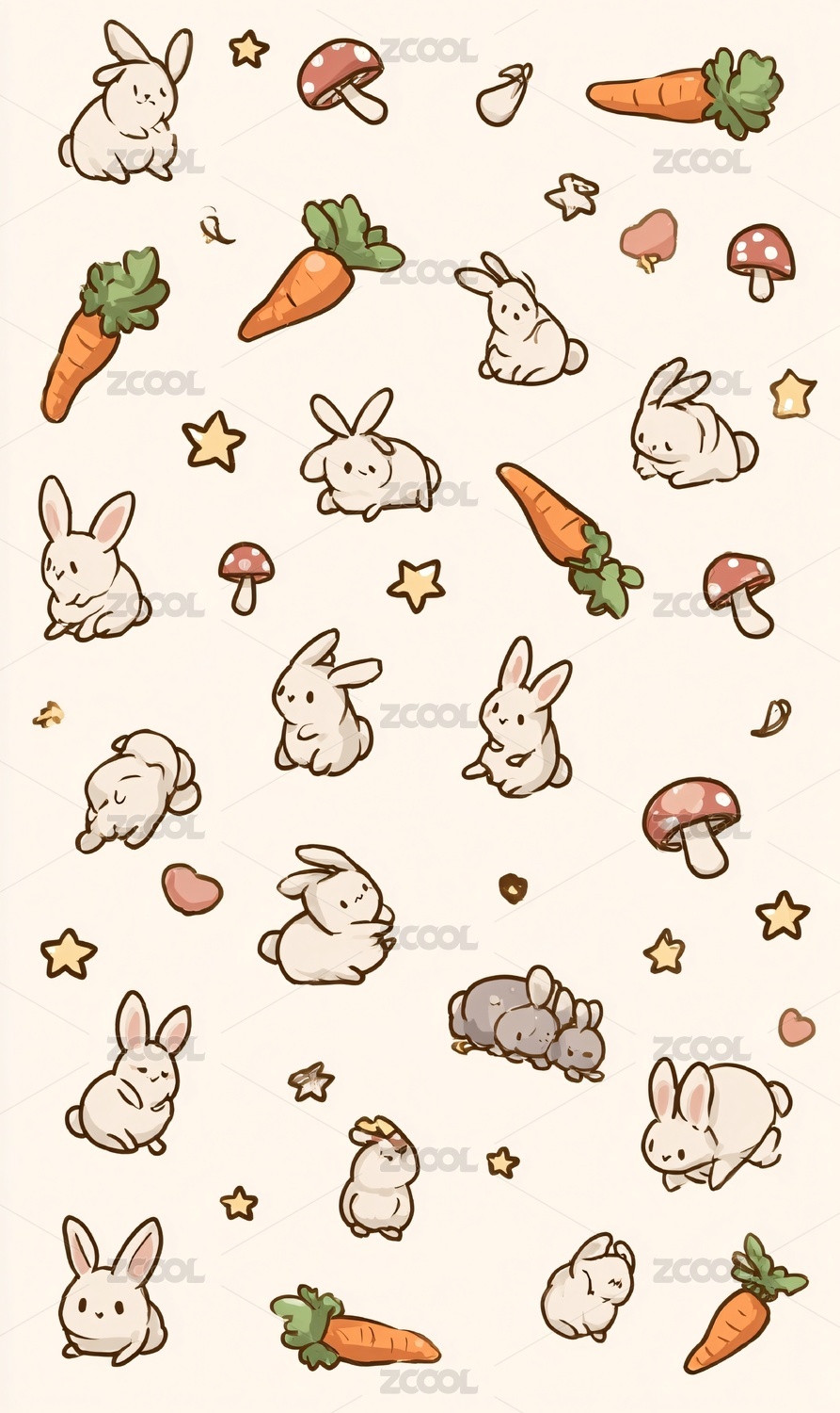 睡眠兔兔可爱卡通咕卡贴纸插画