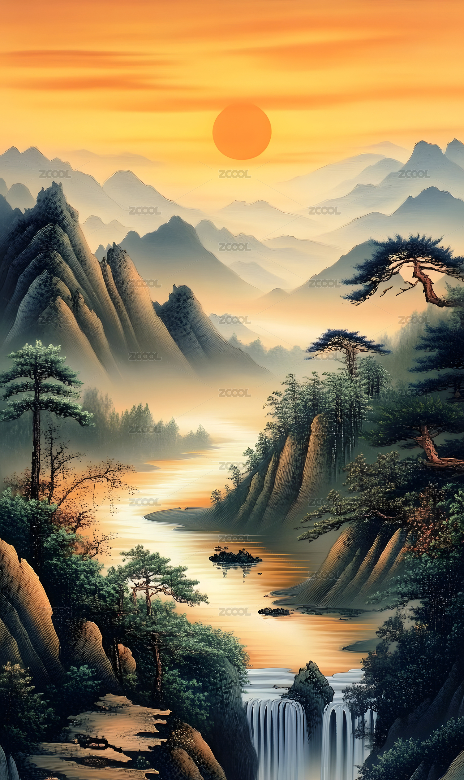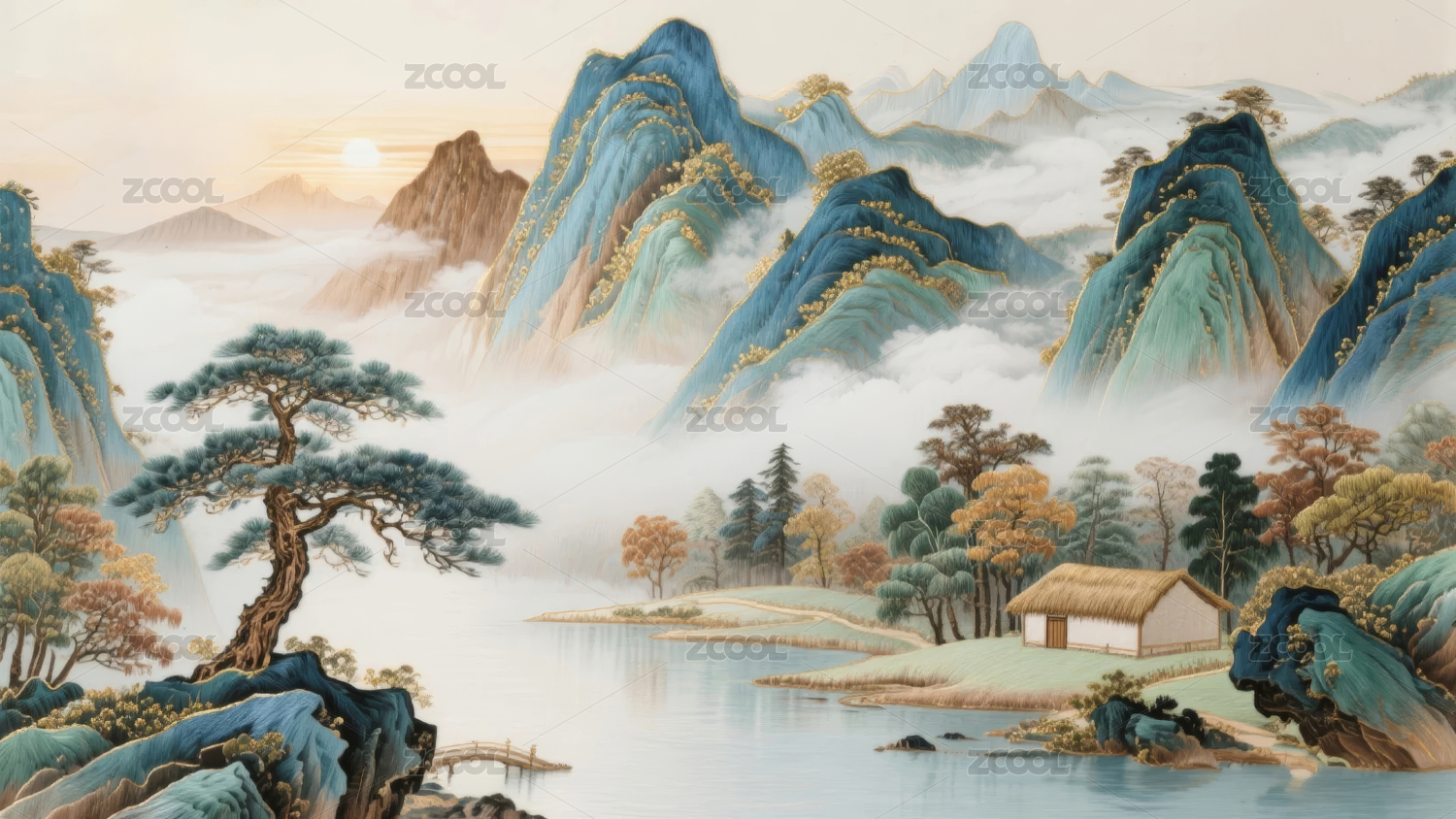 景观,远山,青绿山水,留白,云雾,水墨,泼墨,写意,山水画,山峰