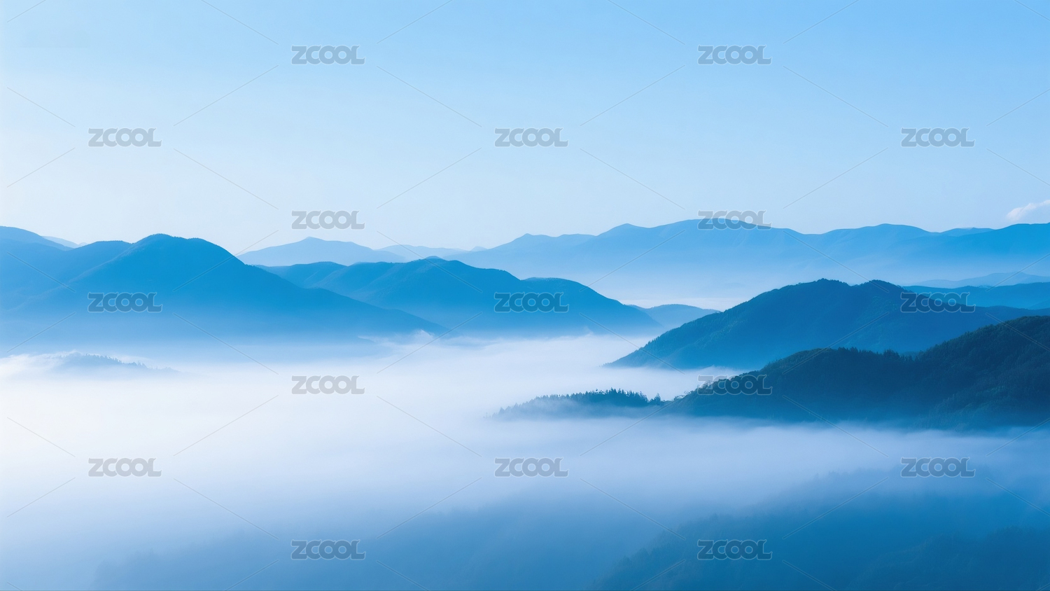 蓝色中国风云雾意境山脉
