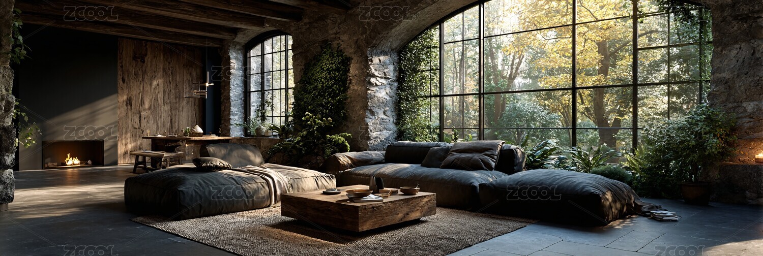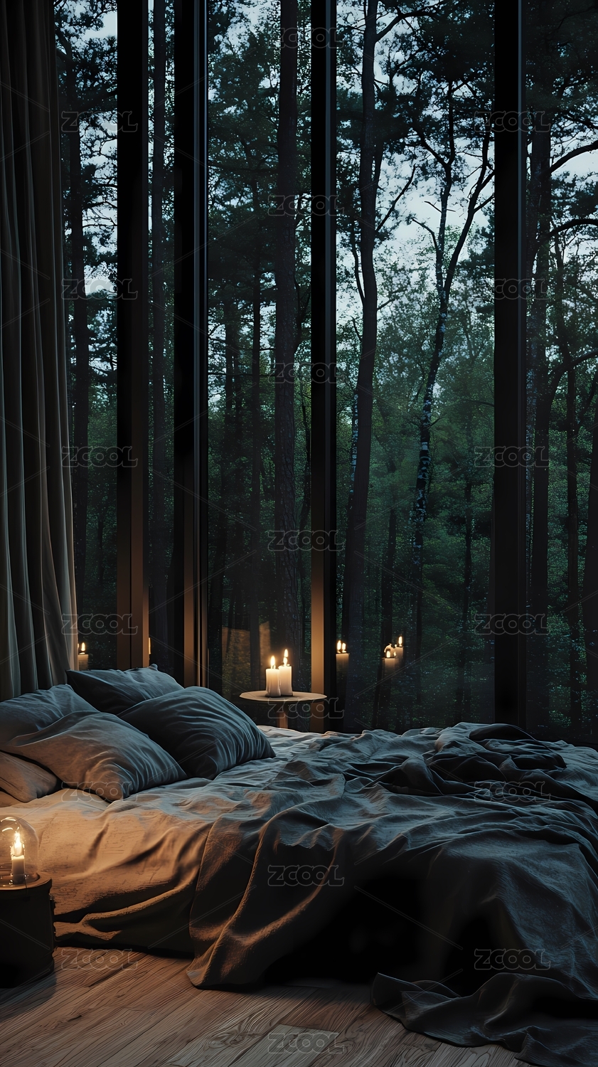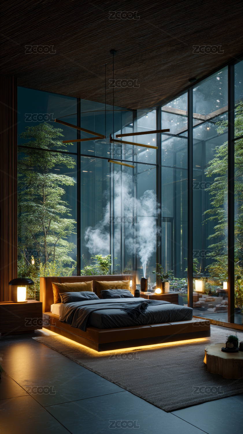 卧室,绿植,窗户,木质元素,室内设计,自然风格,家居,装饰,灯光,现代
