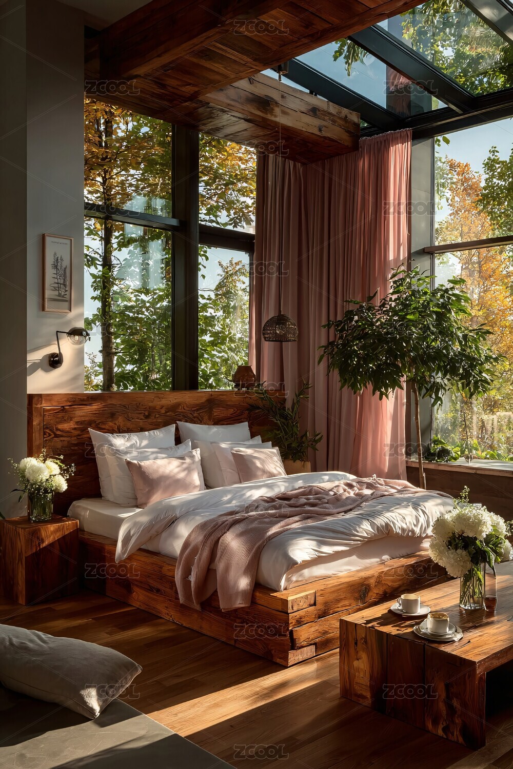 卧室,窗户,绿植,花卉,抱枕,毯子,托盘,室内场景,家居,自然