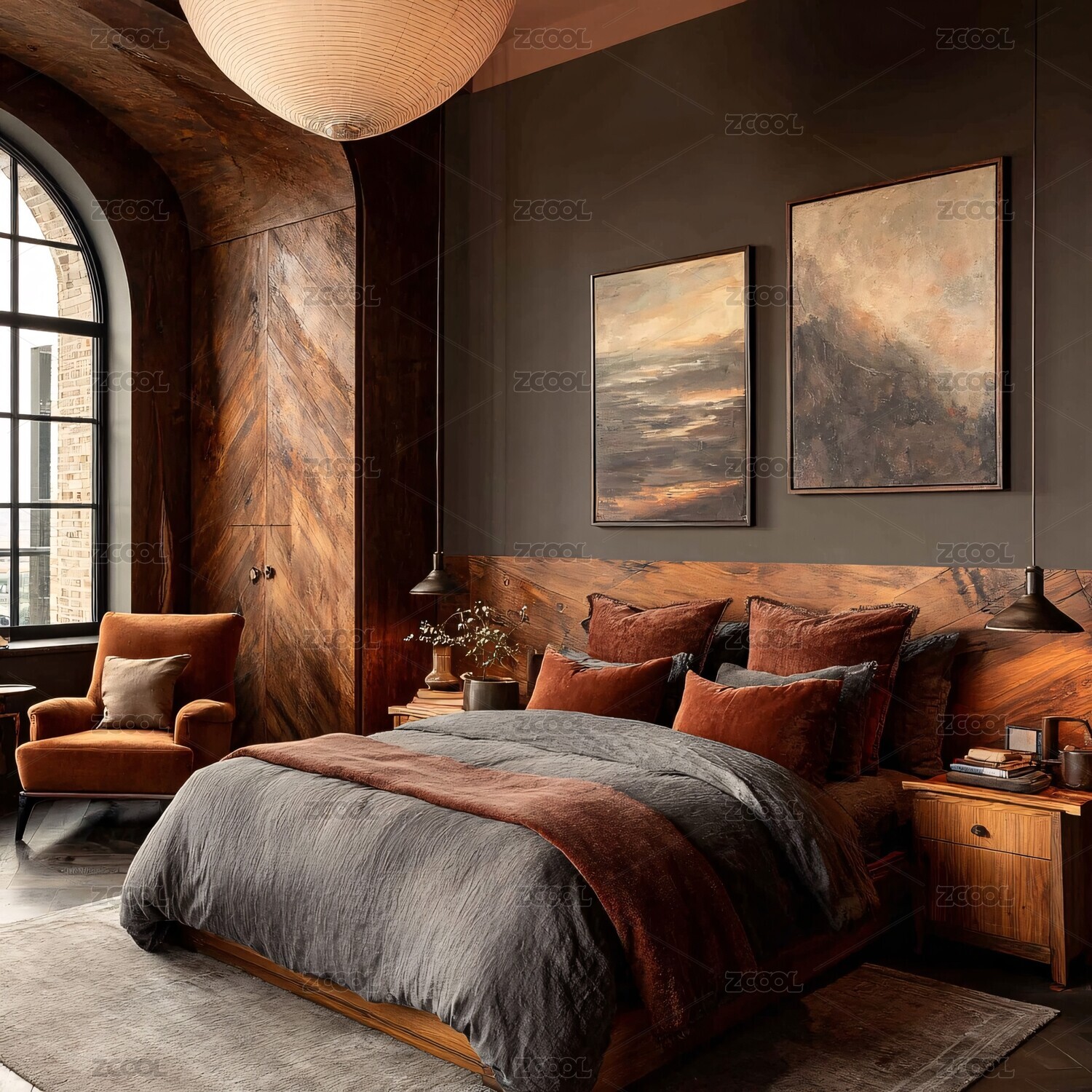卧室,植物,吊灯,墙面,装饰画,家居,室内,简约,现代,场景