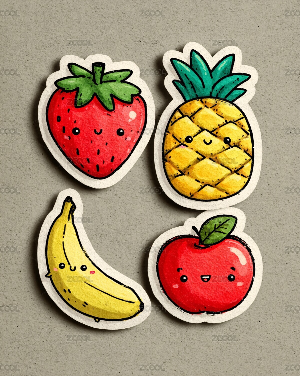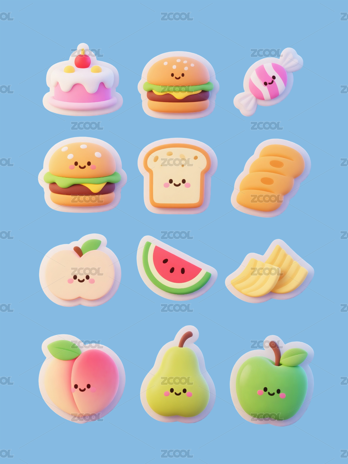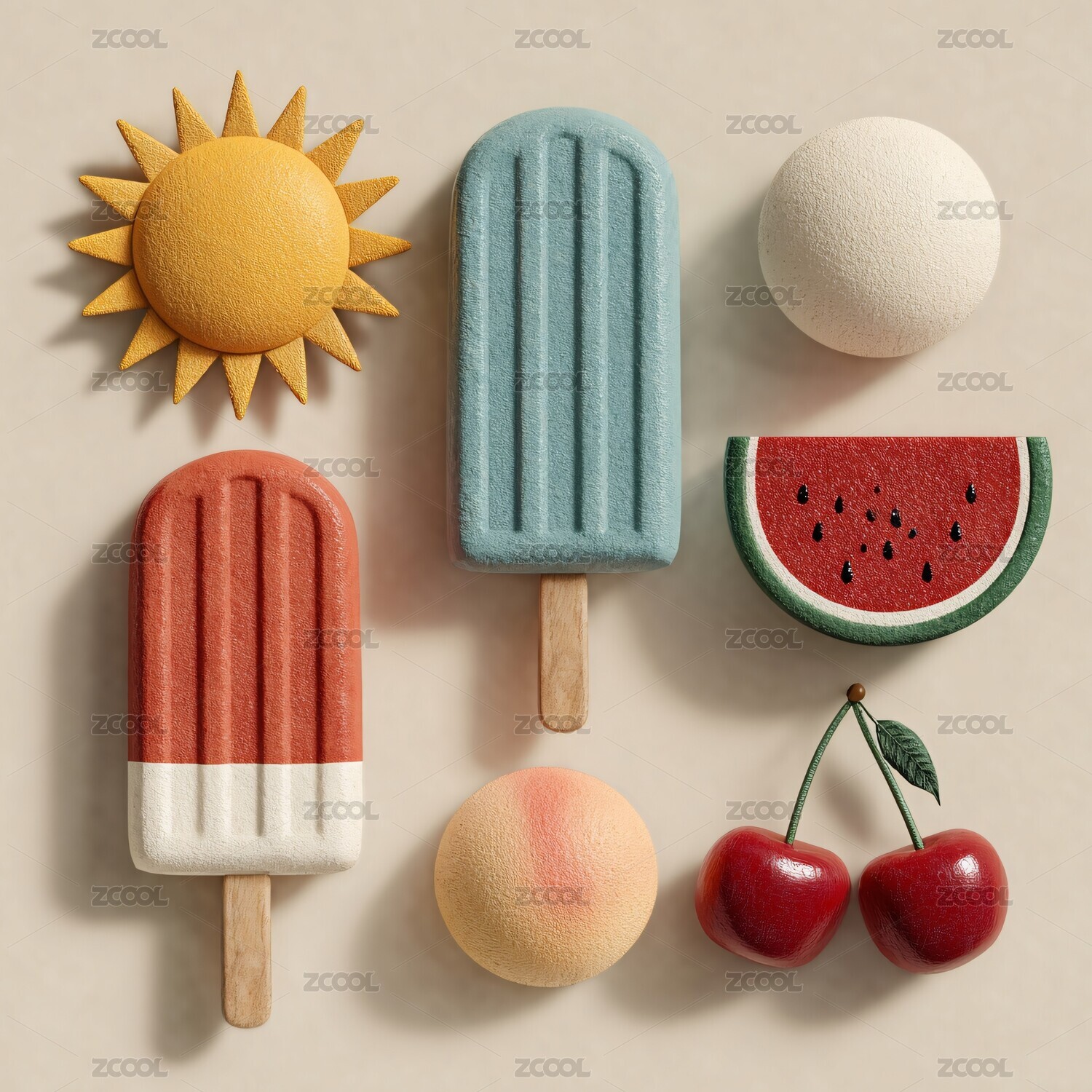 布贴,太阳,苹果,西瓜,菠萝,盆栽,饮料,海浪,蛋糕,插画