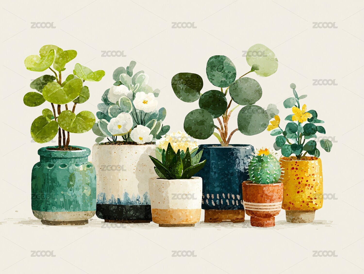 盆栽,植物,花盆,插画,图案,绿植,装饰,艺术,创意,可爱