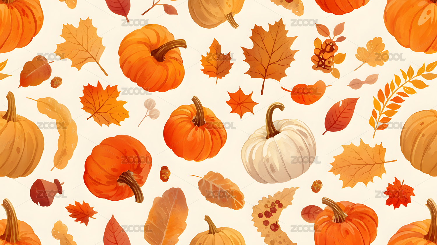 南瓜,秋叶,植物,插画,图案,背景,秋季,元素,装饰,叶子