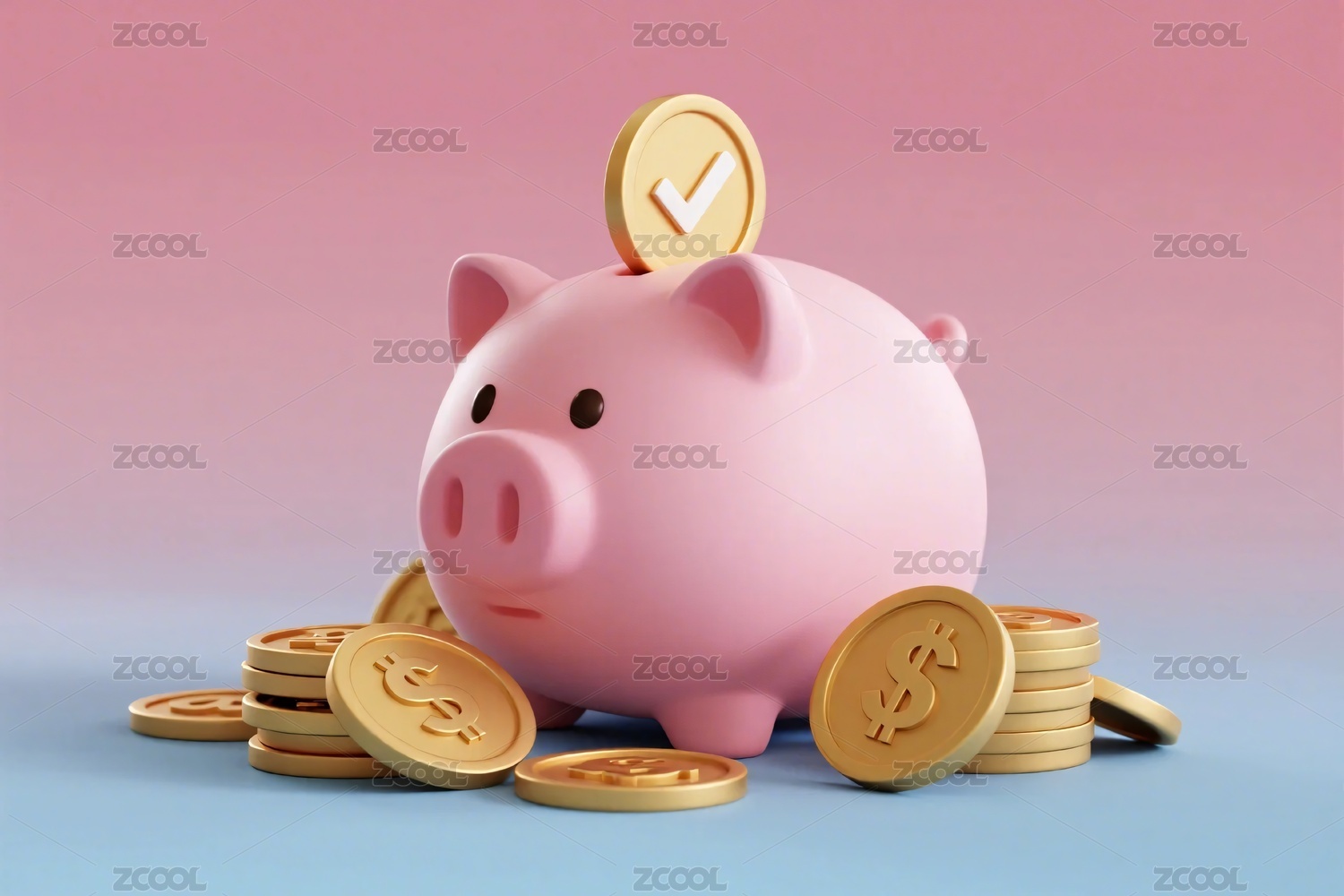 粉色存钱罐与金币