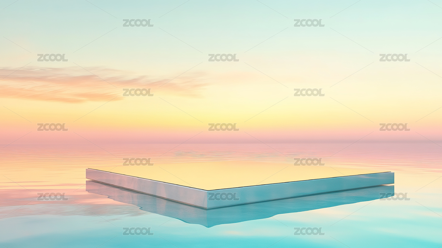 3D黄昏水面白色矩形产品展台