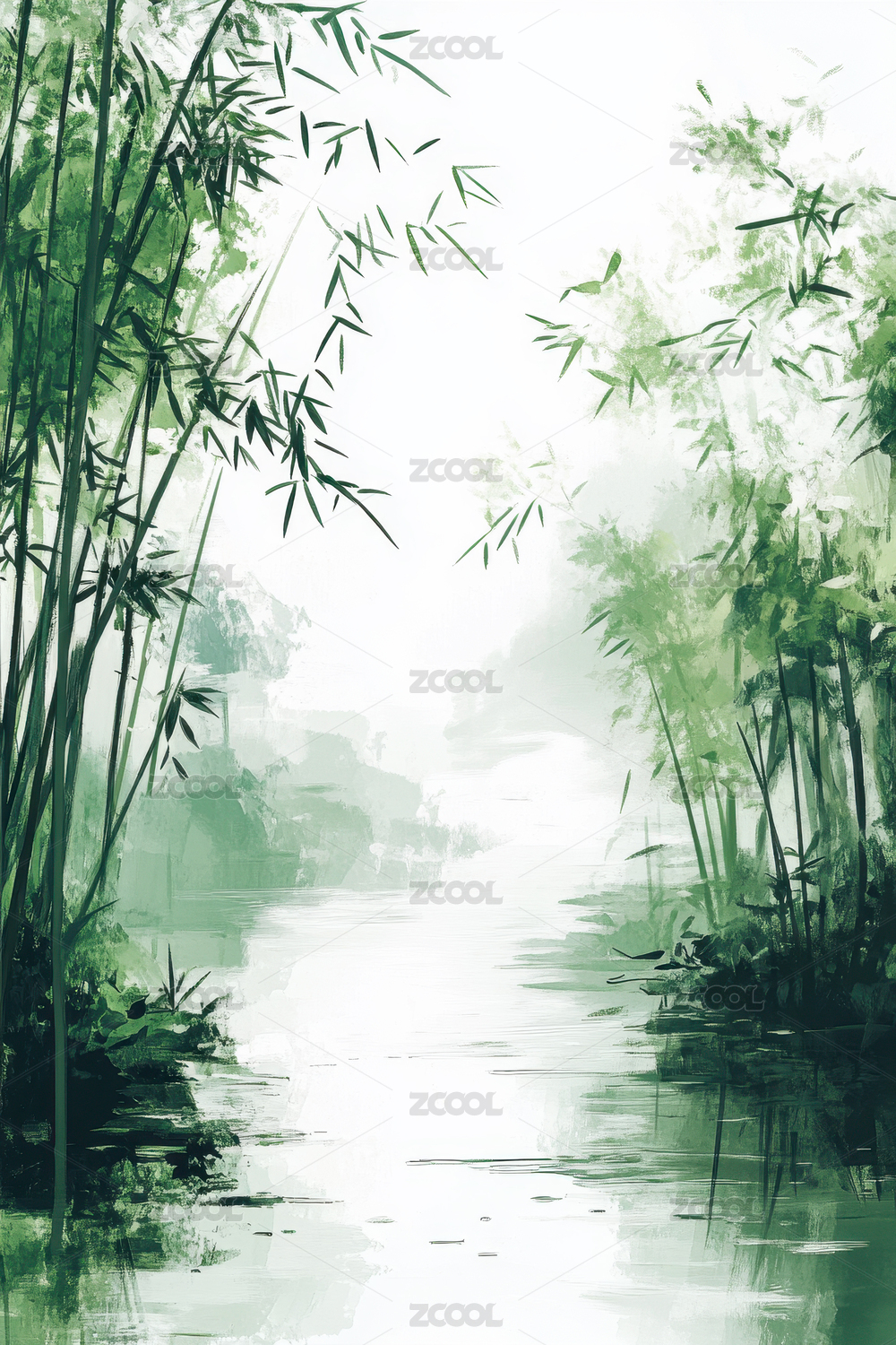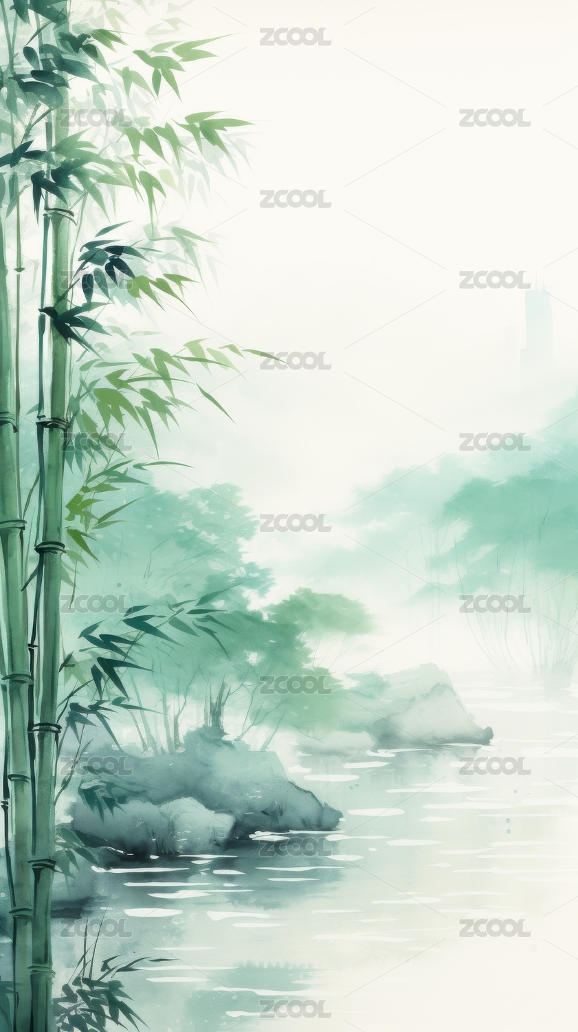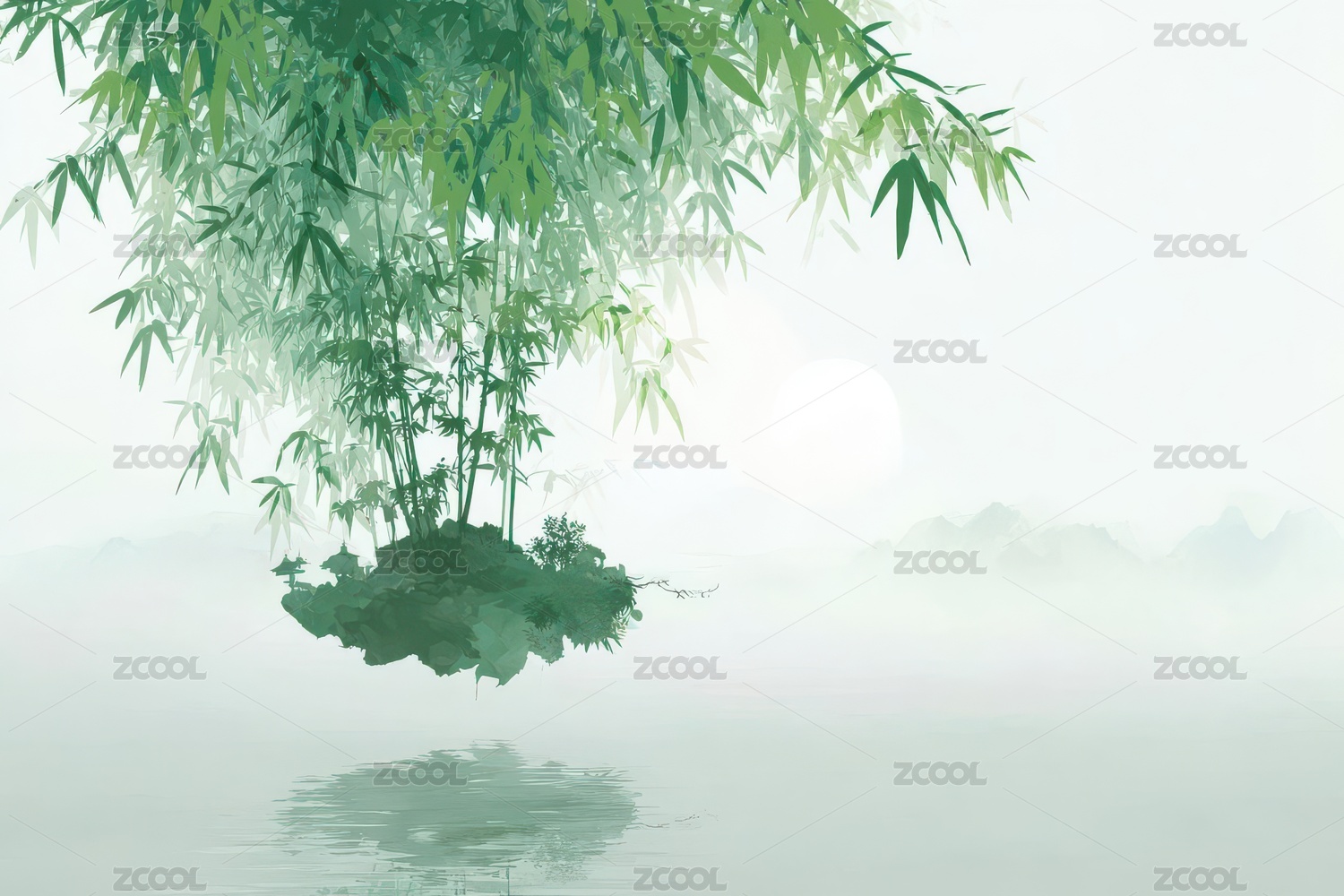 自然,风景,树叶,植物,湖泊,远山,画风,水墨,山峦,河岸