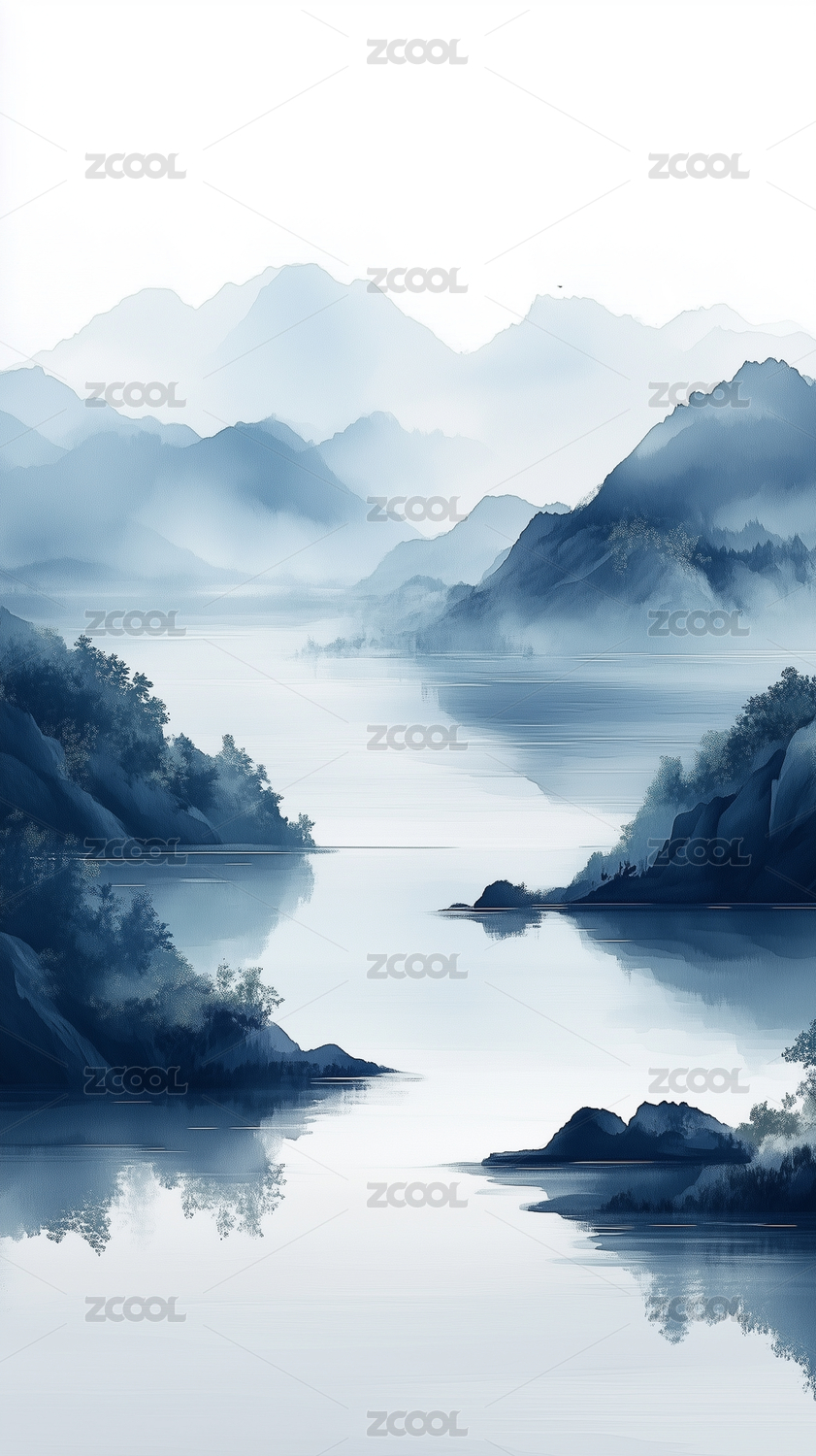 自然,风景,柔和,平静,山水,湖泊,远山,画风,水墨,山峦