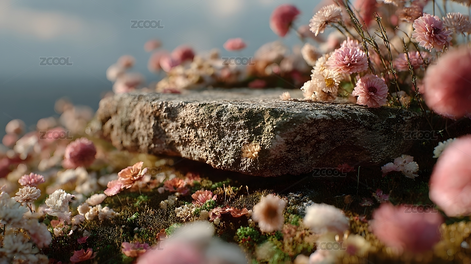 树木,阳光,自然,风景,阴影,远山,环境,粉色,静谧,石头