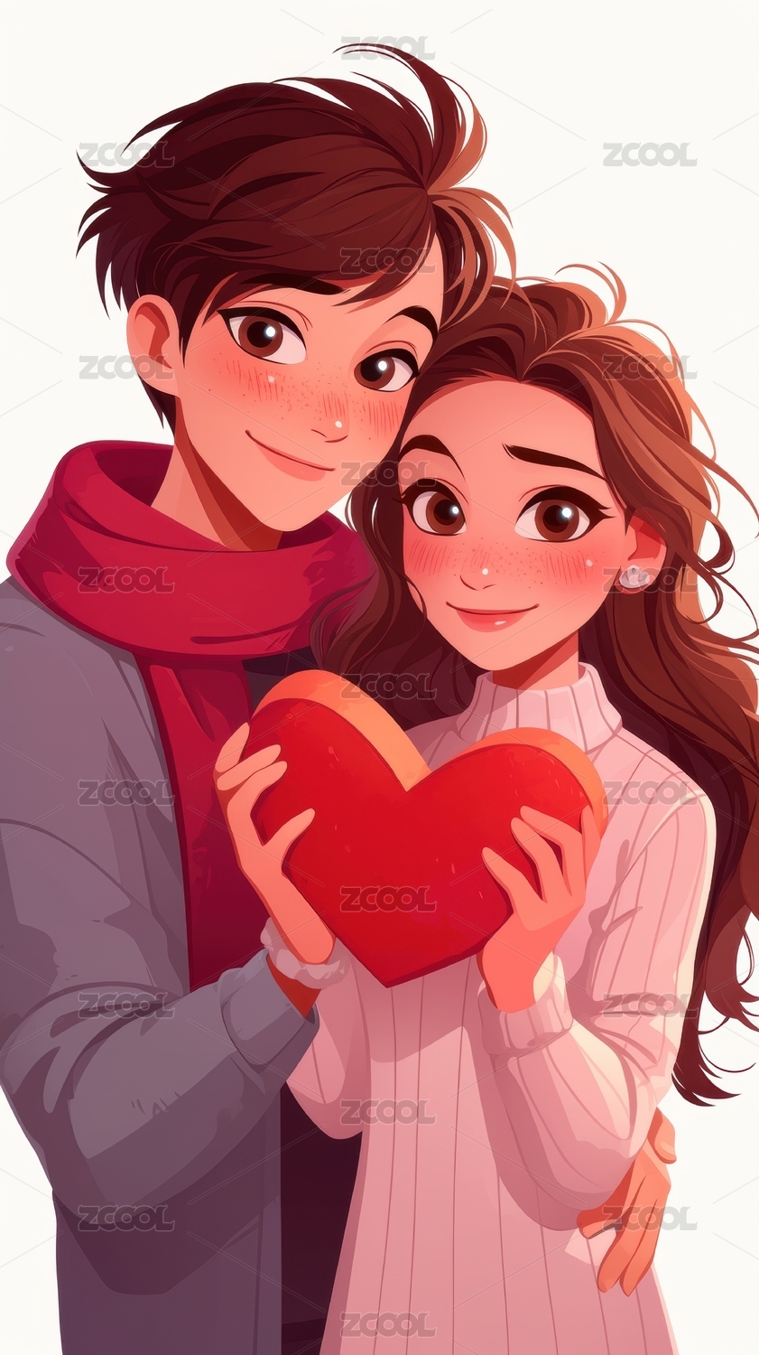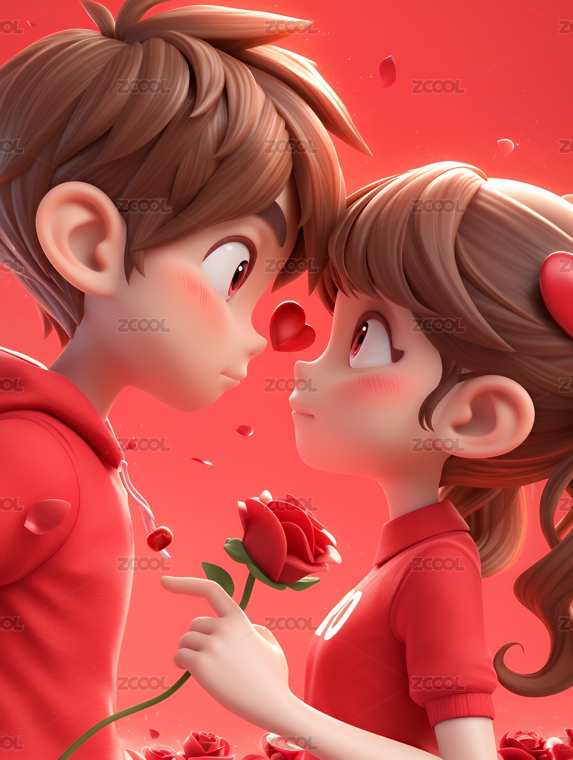 卡通,插画,模糊,红色,眼睛,虚化,浪漫,氛围,花束,温馨