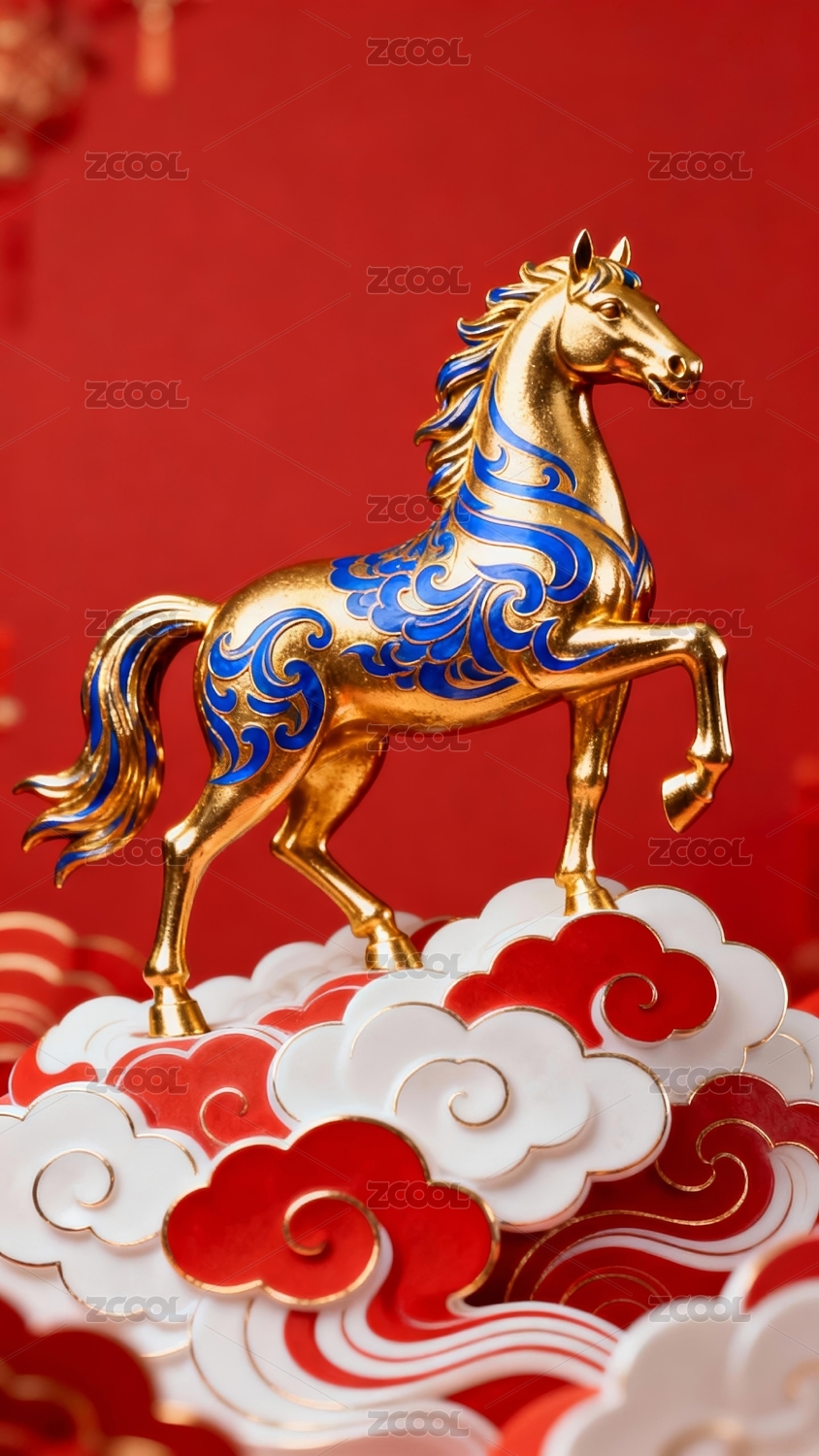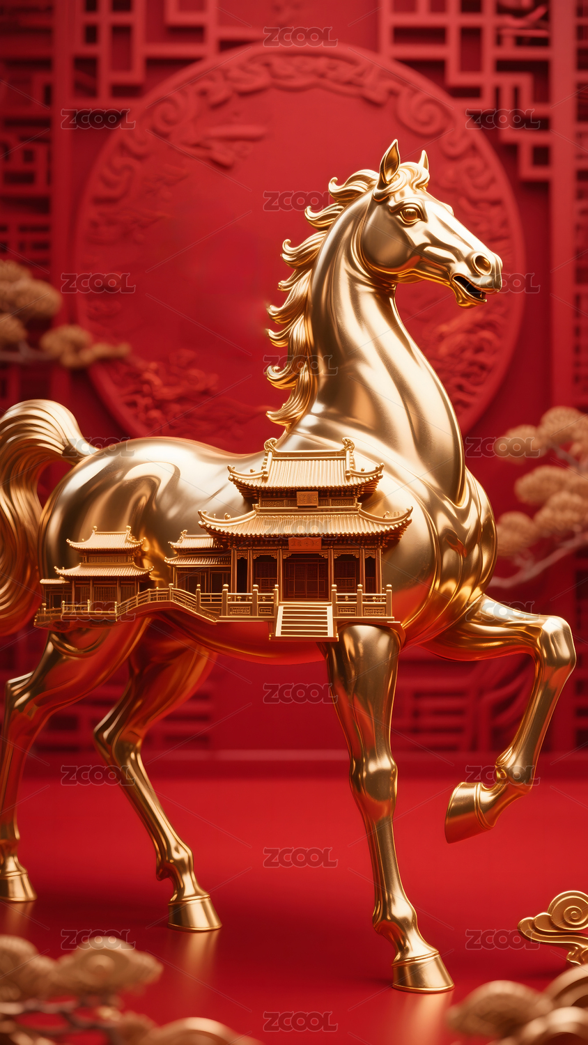 金色骏马与红色节庆装饰