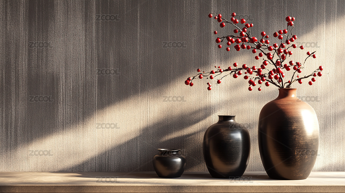 纯色背景墙插花花瓶简约商业电商广告PPT
