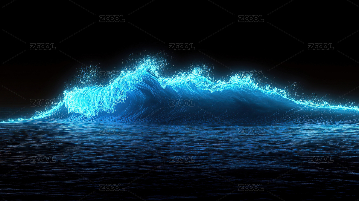 高耸蓝色海浪夜空