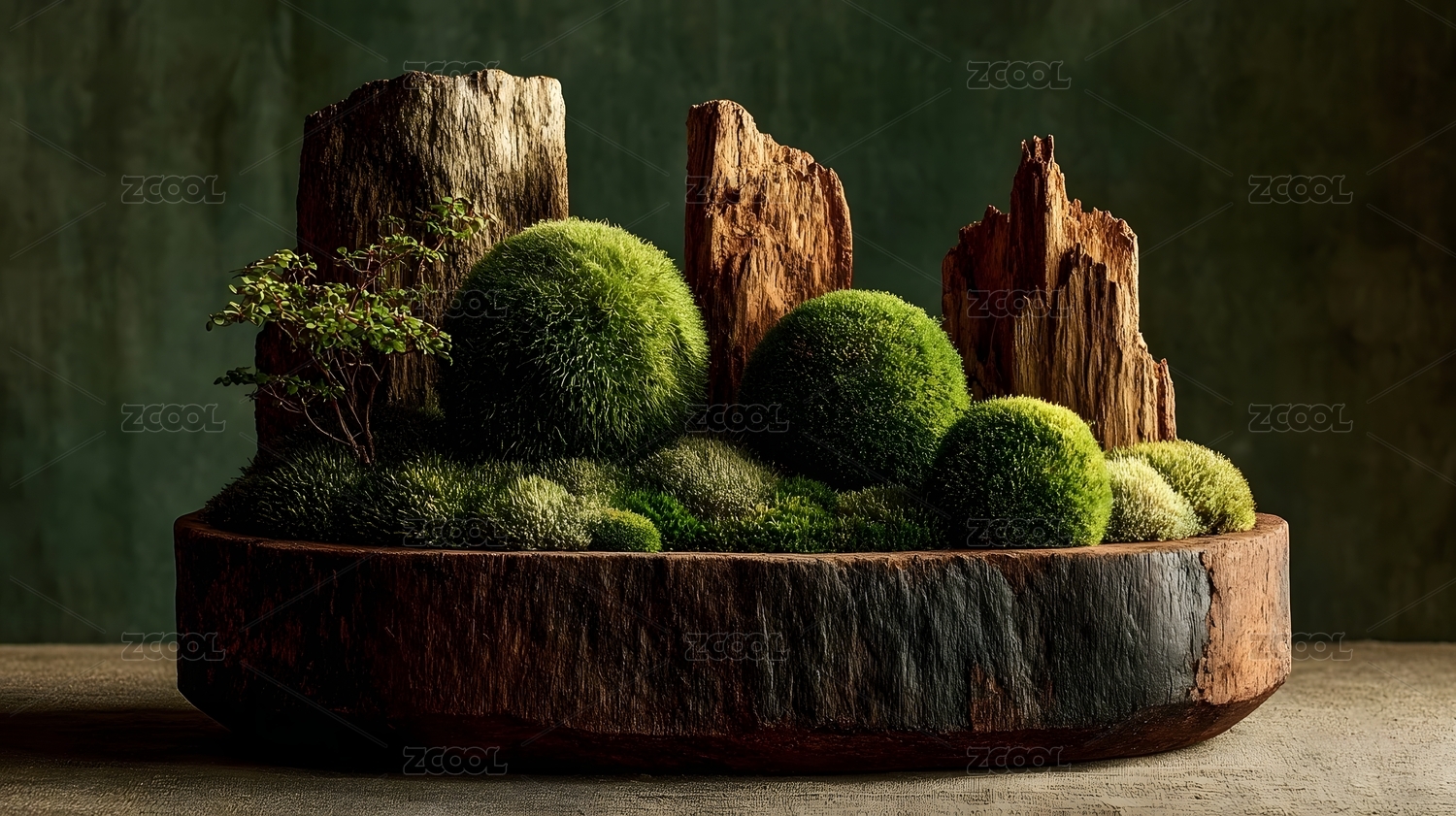 自然木桩与苔藓装饰组合