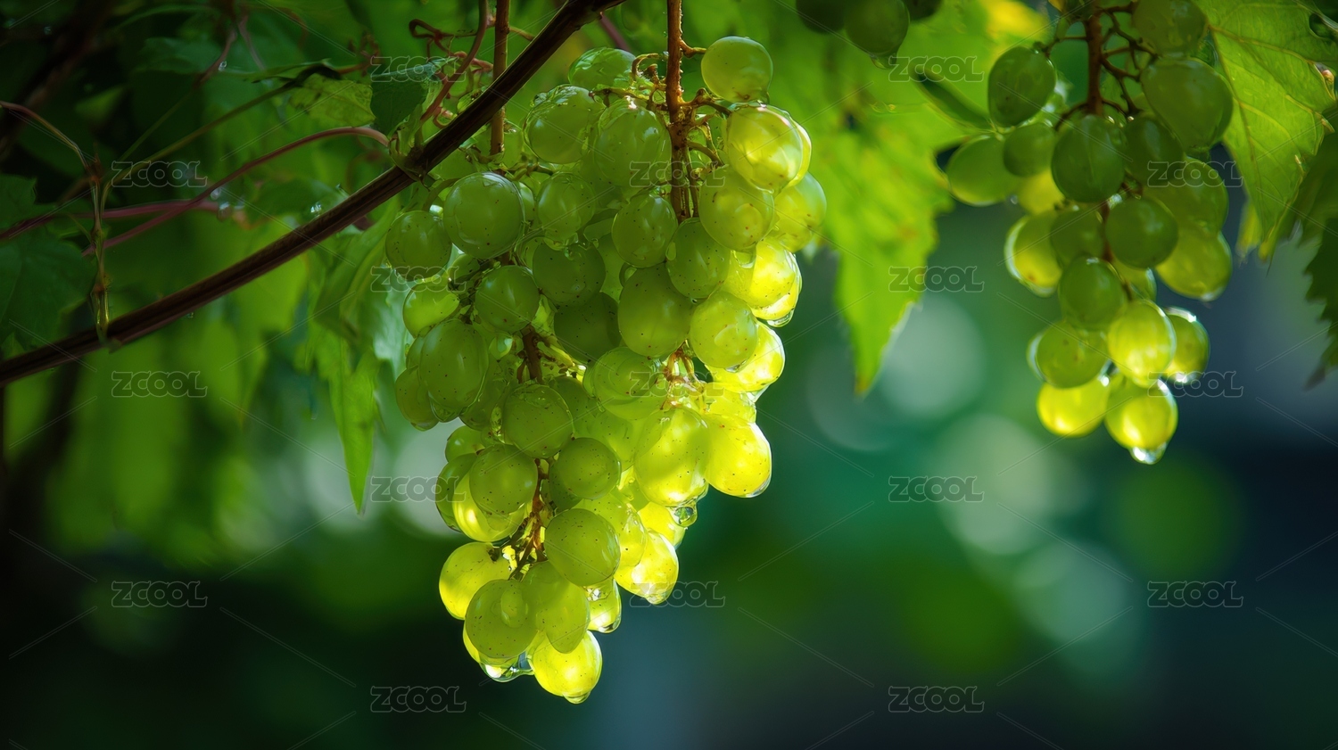 青葡萄,叶蔓,晨露,光韵,翠枝,水润,夏息,清甜,果蔬,田园