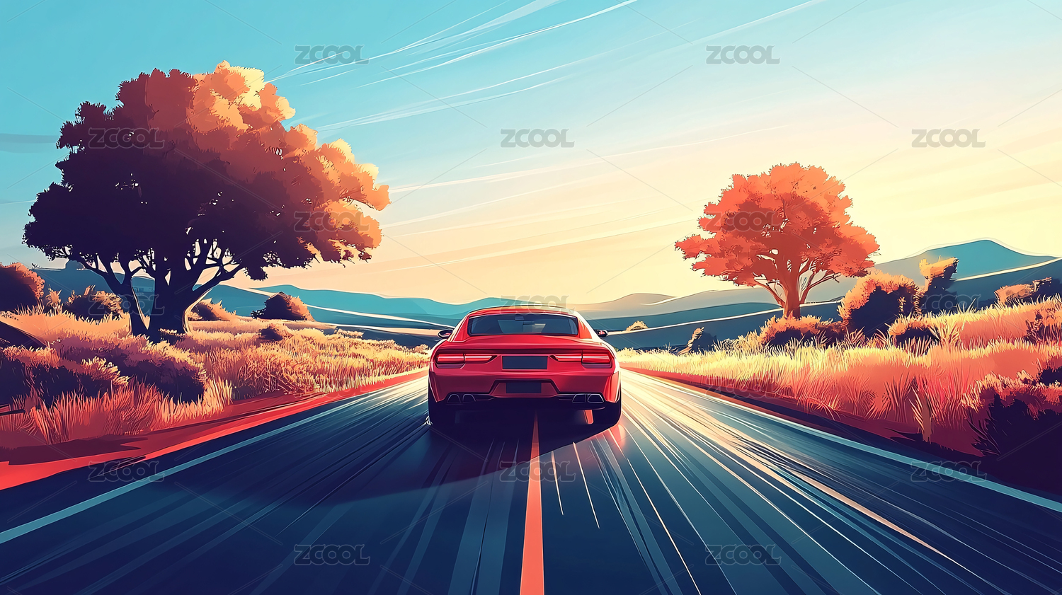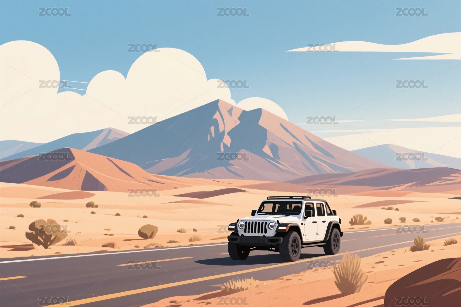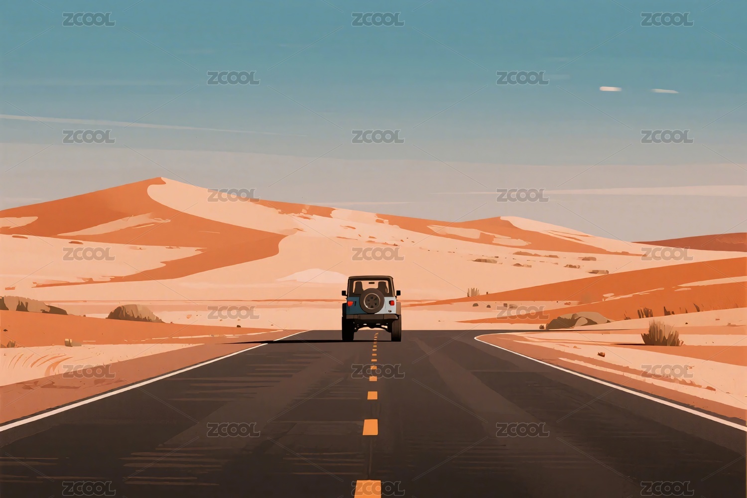 沙漠,公路,越野车,画面元素,插画,风景,主题,元素,户外,旅行
