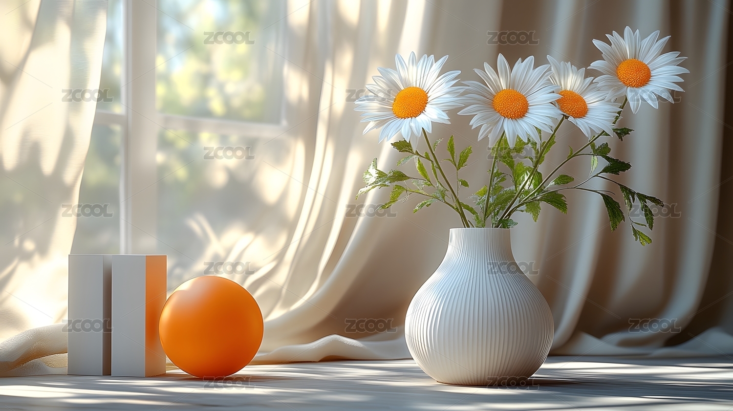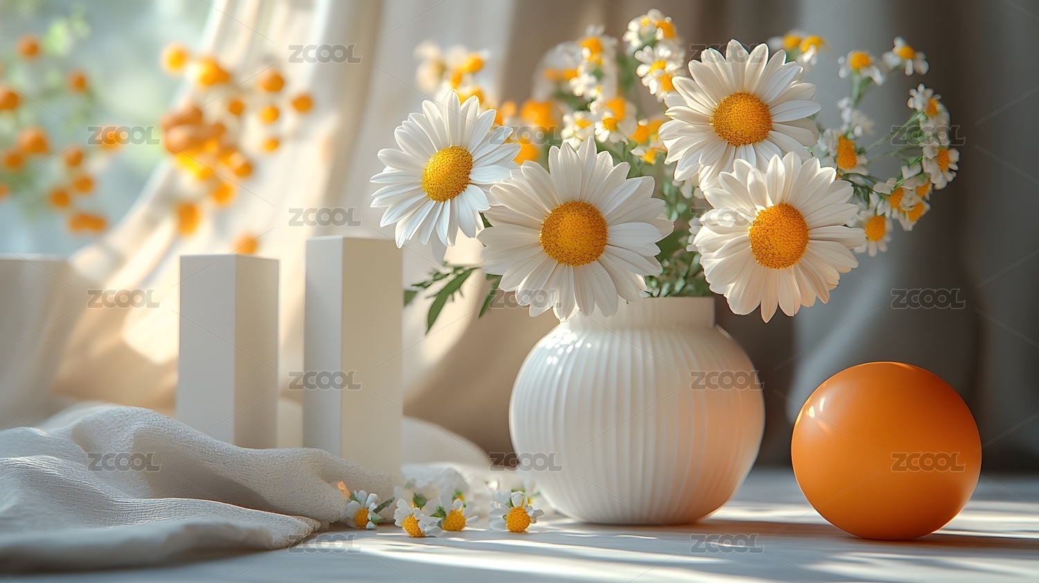 雏菊花束与静物组合