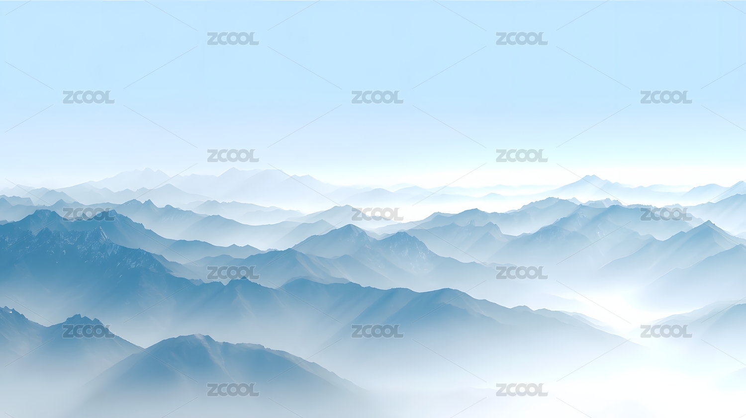 柔和,自然,蓝色,意境,山峰,天空,淡雅,云雾,空旷,山脉
