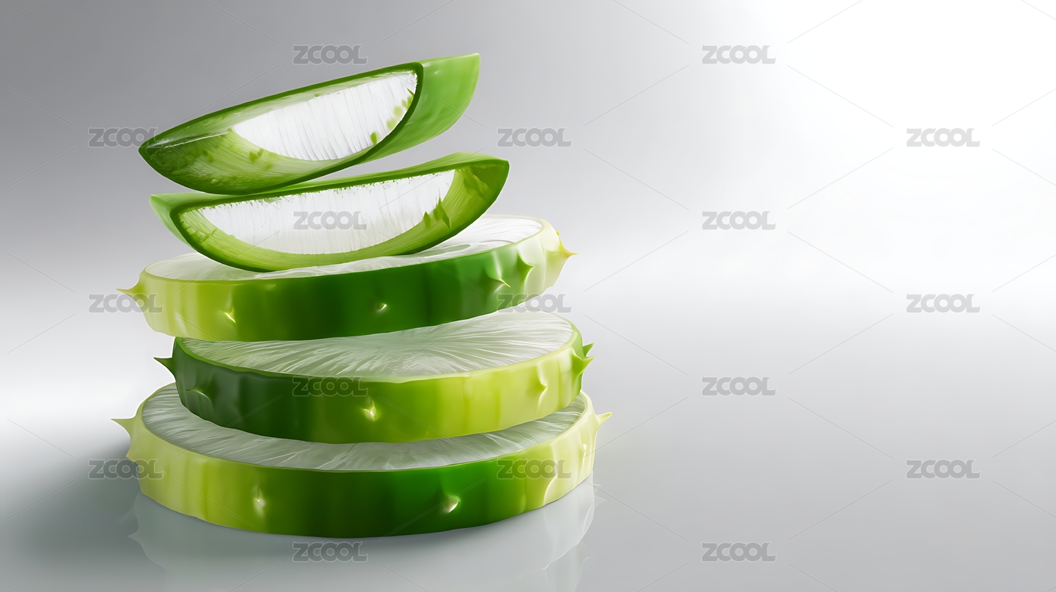 清新,芦荟,绿色,植物,健康,特写,切片,悬浮,堆叠,凝胶