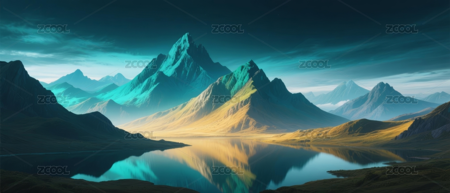 色彩斑斓山脉湖泊倒影