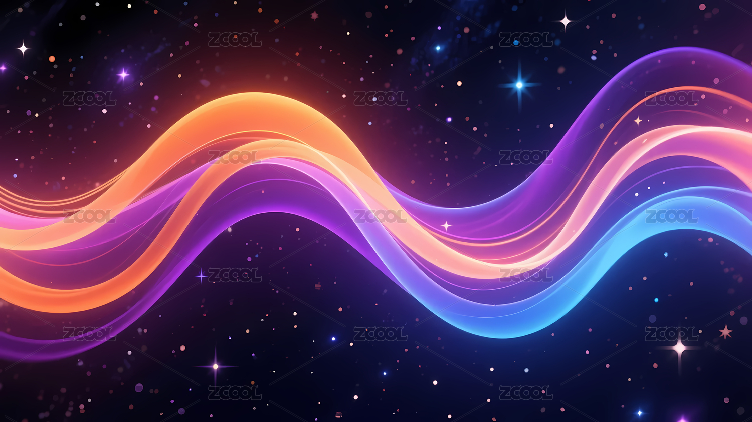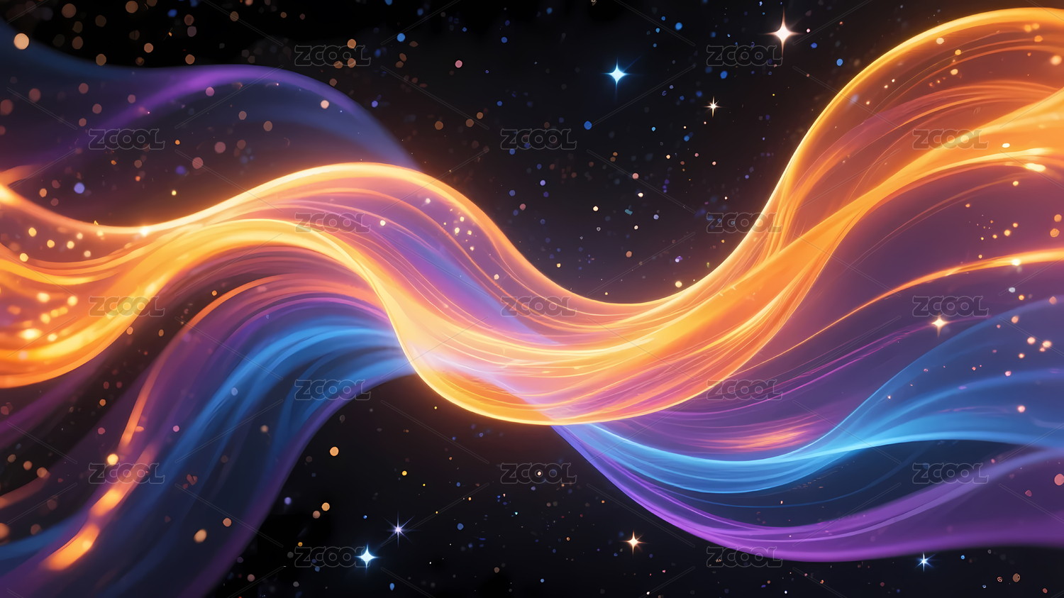 背景,橙色,蓝色,星空,深邃,星星,波浪,线条,蜿蜒,闪烁