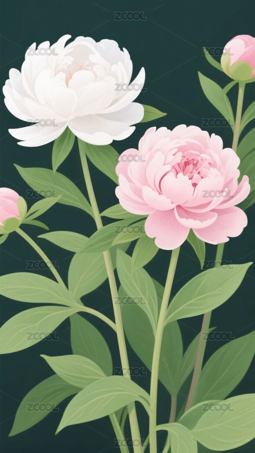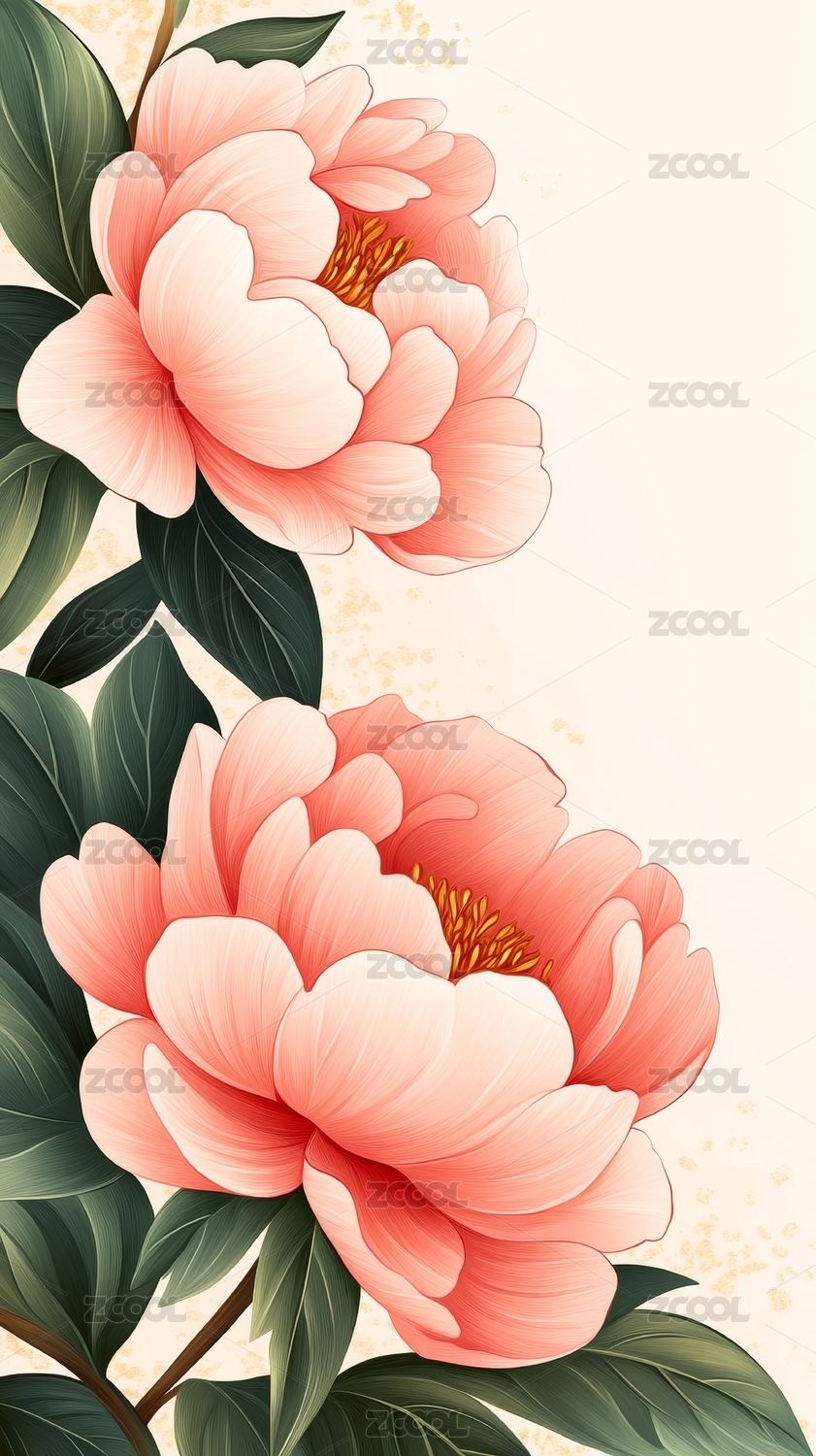 芍药,花卉,粉色,花朵,花瓣,绿叶,植物,插画,装饰,自然
