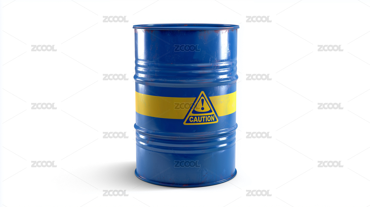 蓝色桶上面有黄色的警示标志