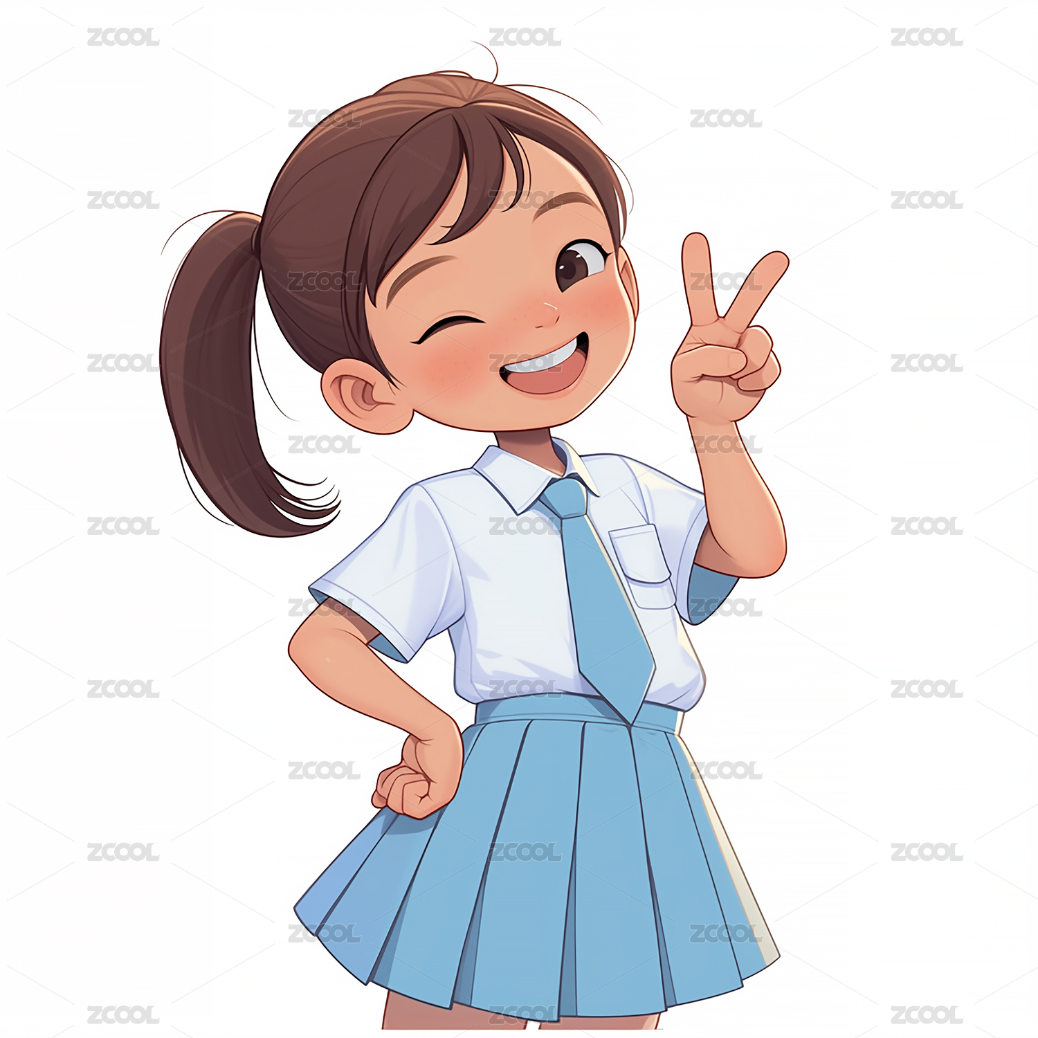 Q版小女孩手绘插画素材