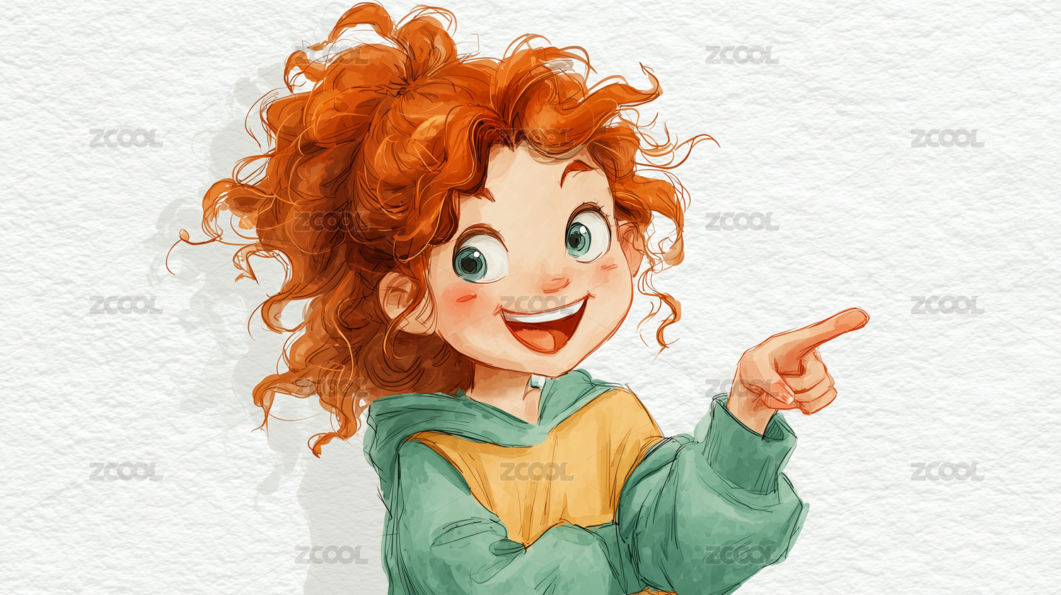 一个可爱的女孩伸出一根手指 手绘插画