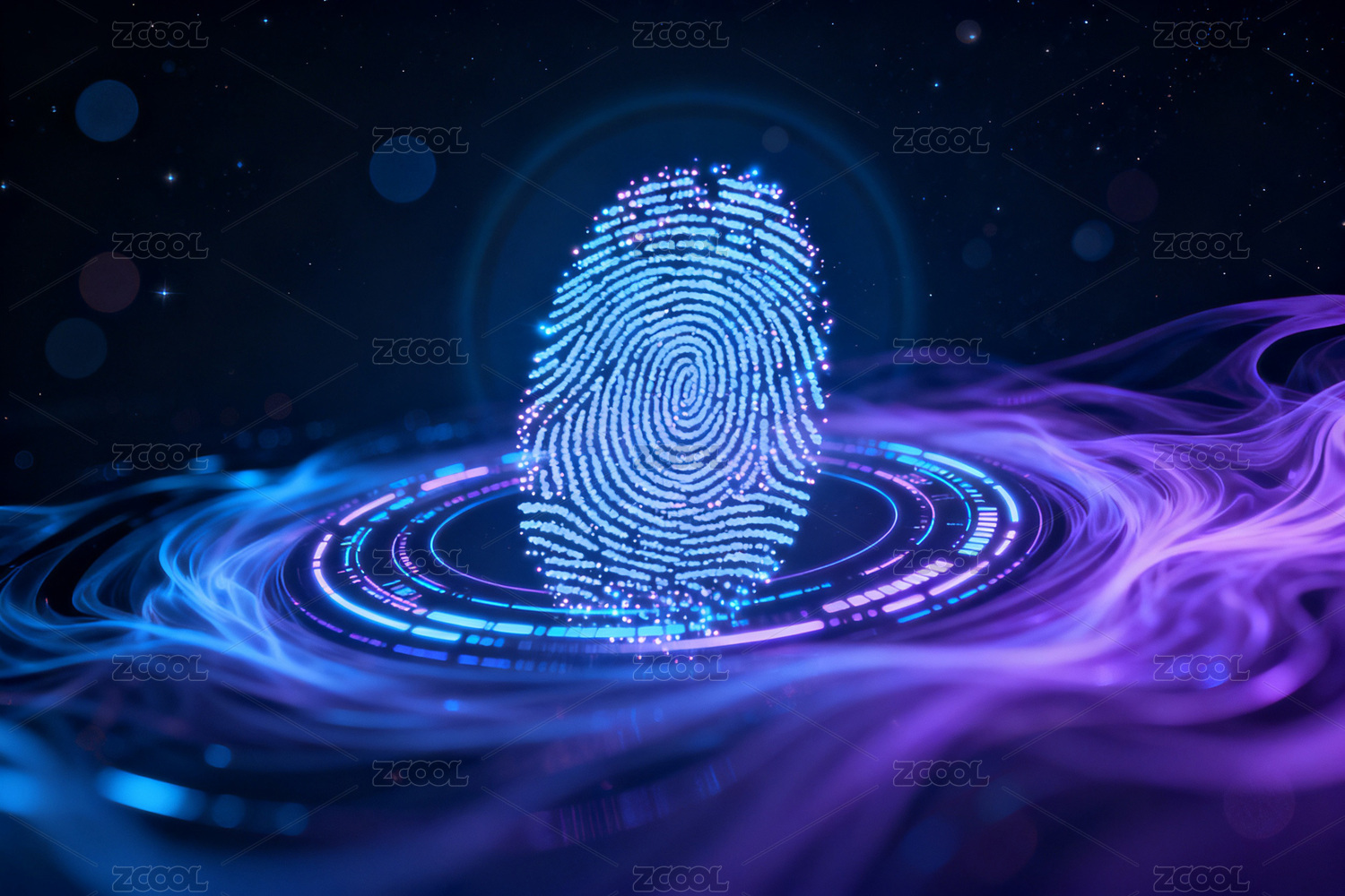 指纹,数字化,科技,网络,蓝色,光点,连接,未来,安全