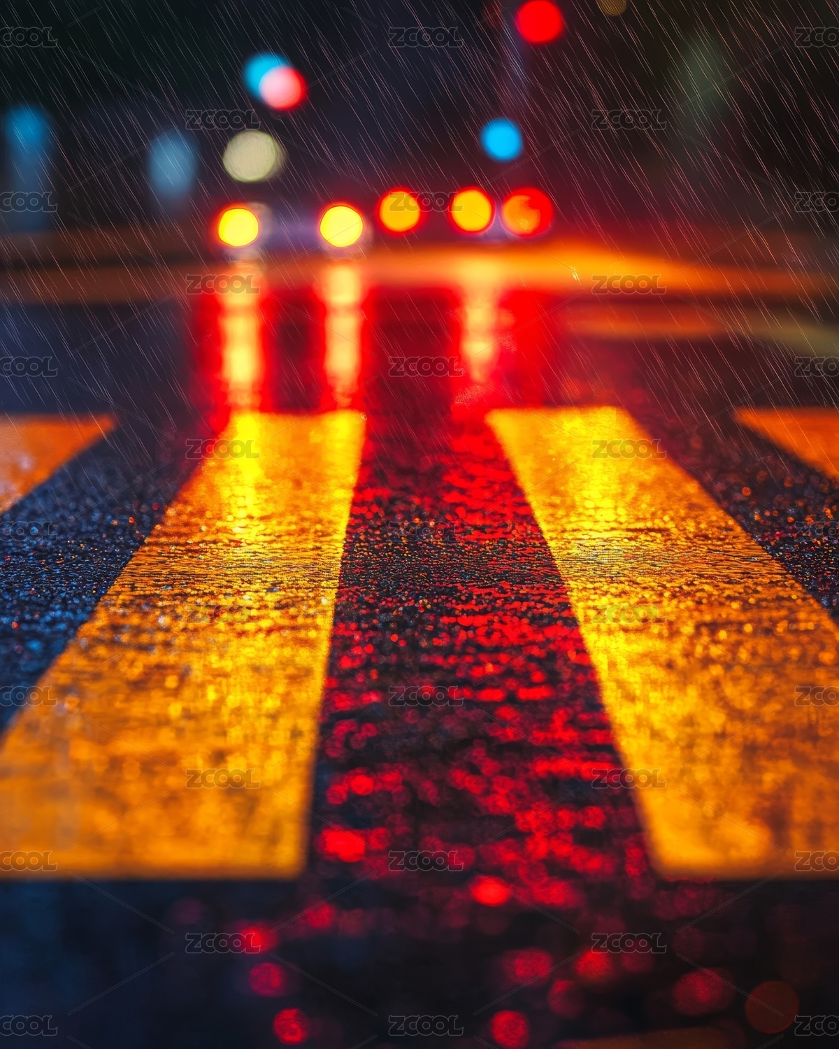 雨夜斑马线的迷离光影