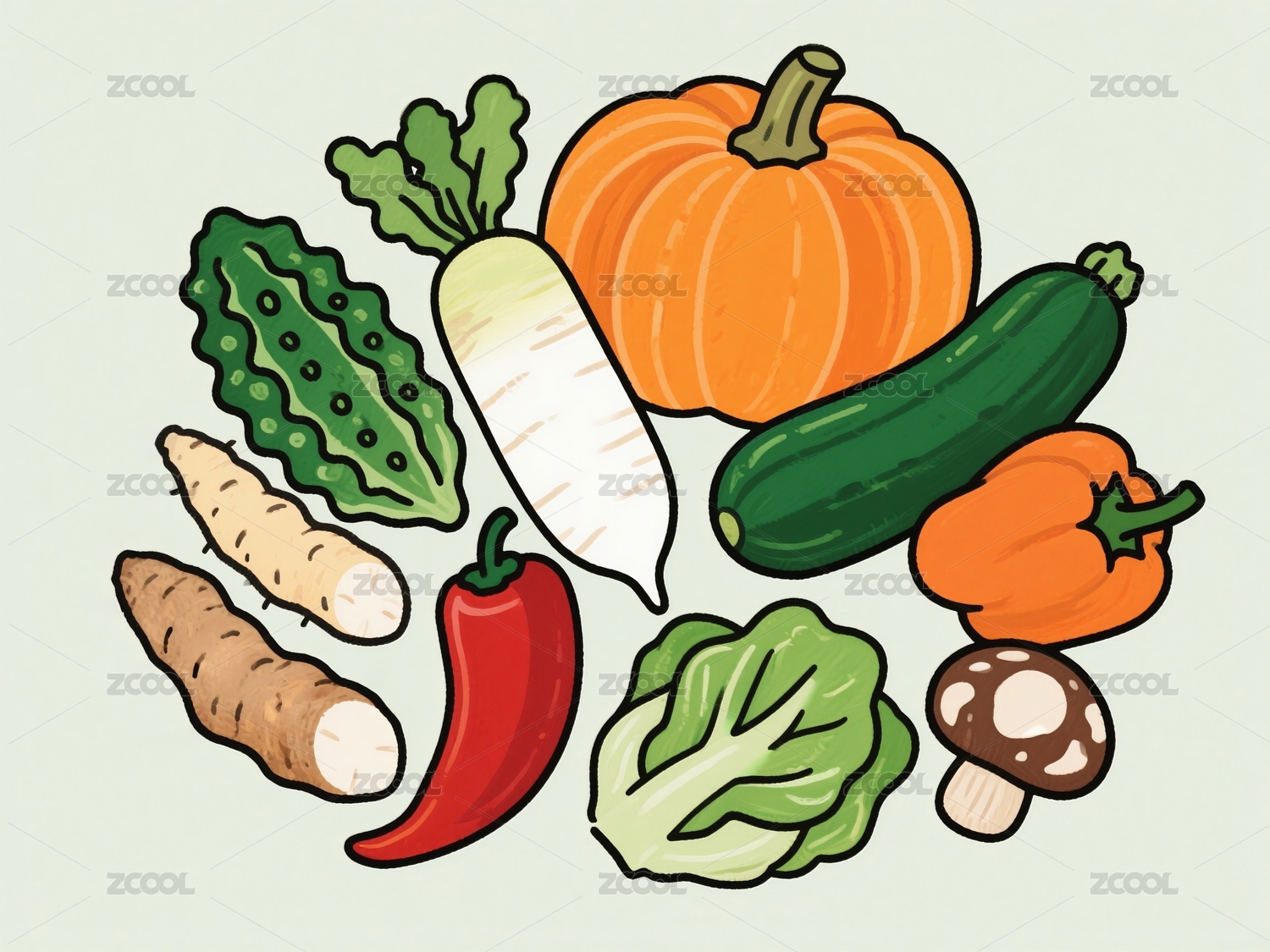 菜篮子里面装有牛奶西瓜水萝卜等食材