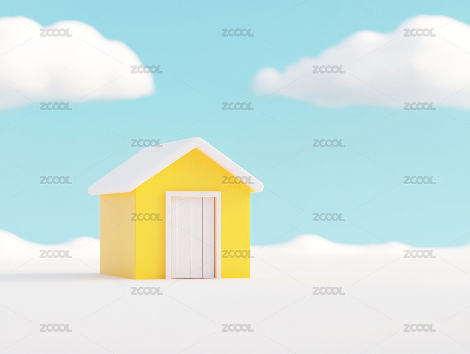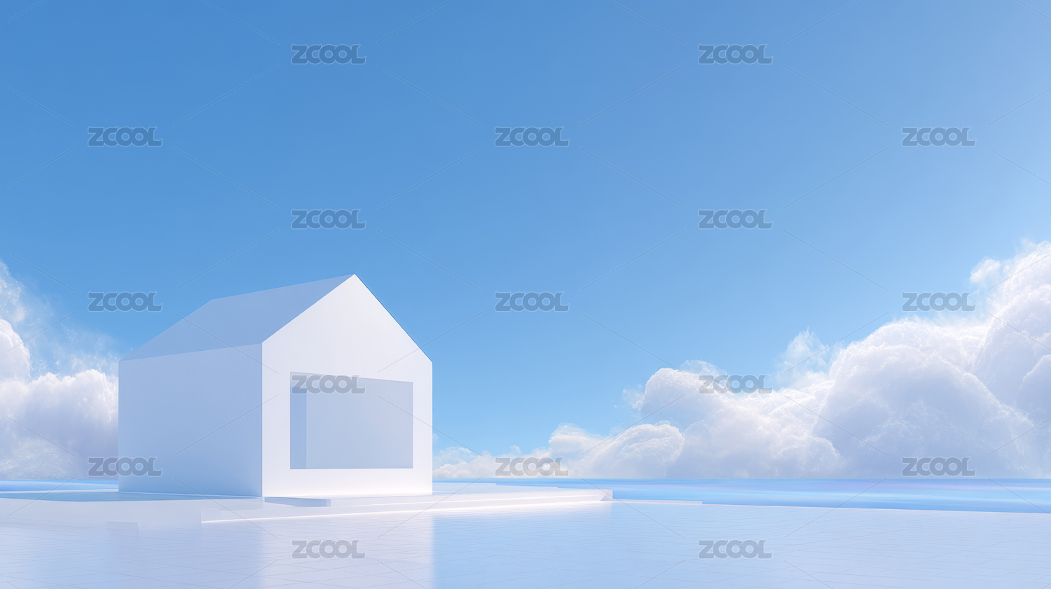 小屋,蓝天,白云,简洁,清新,围栏,门窗,平静,纯净